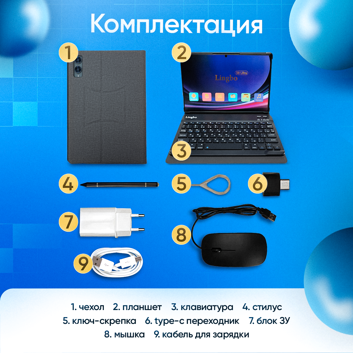 Планшет с клавиатурой Лингбо S9 PRO MAX, голубой