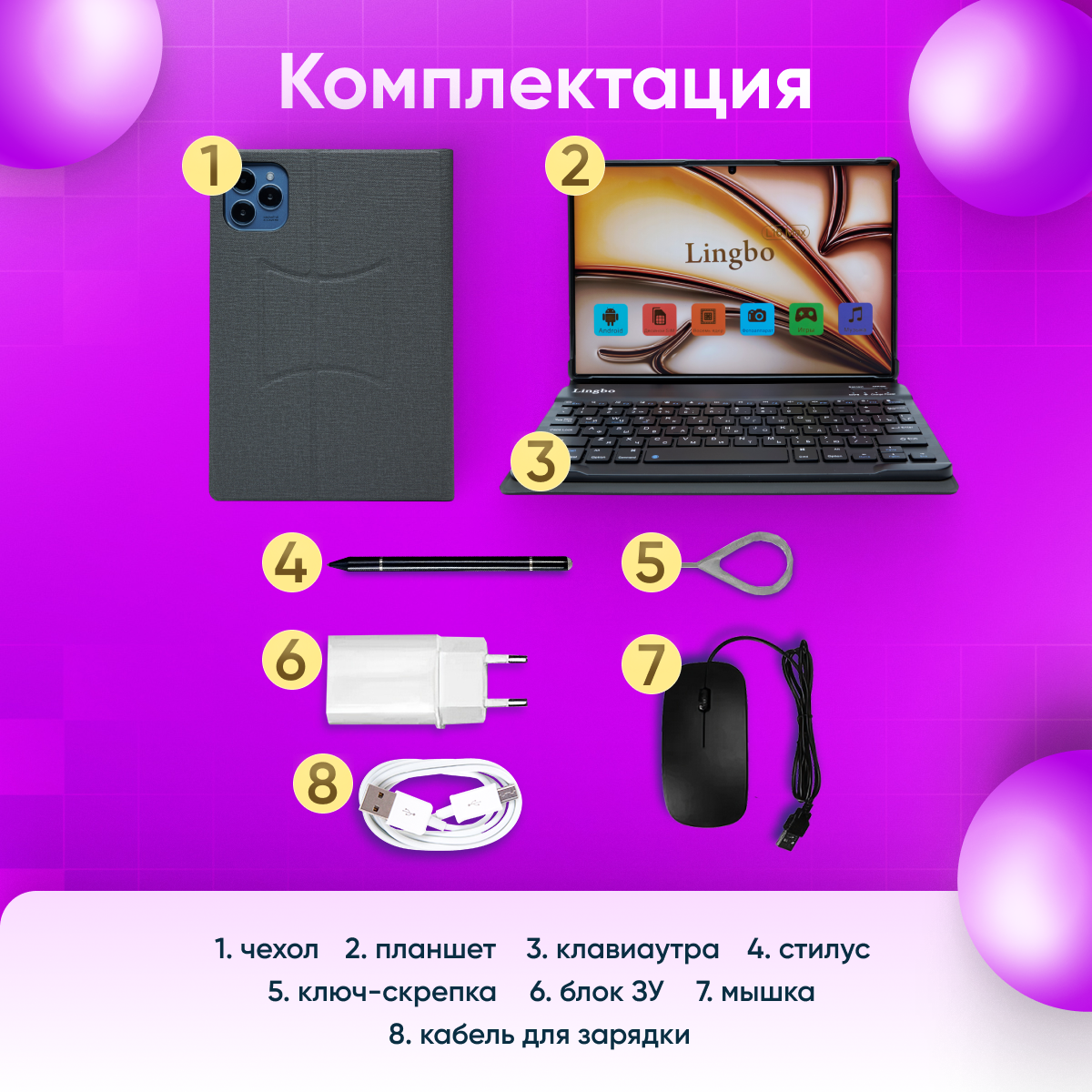 Планшет с клавиатурой Лингбо PAD A20, черный