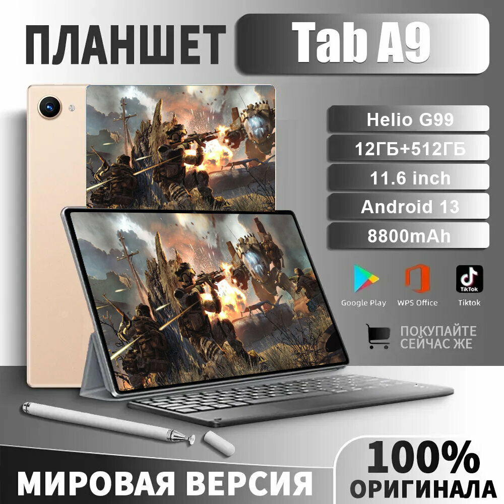 Купить Игровой планшет TabA9, 12+256 Гб, 11,6-дюймовый, с клавиатурой, Золото