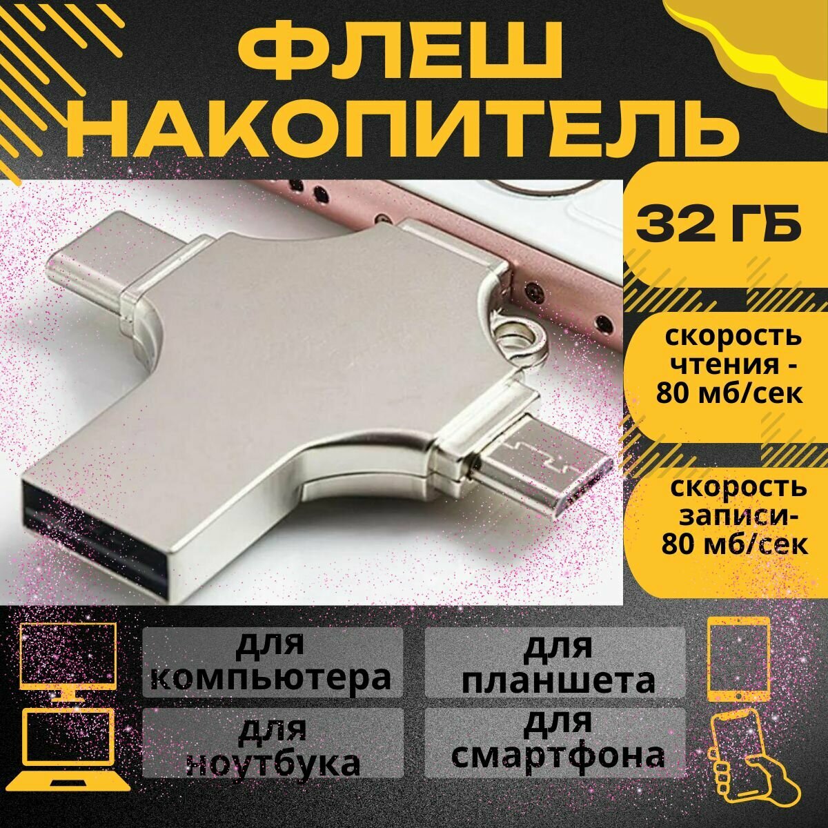 USB флеш накопитель 32 Гб/Металлическая флешка для всех устройств. интересное: