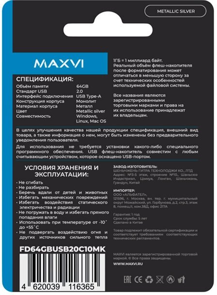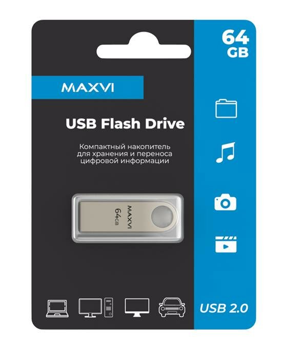 USB флеш-накопитель Maxvi 64GB (FD64GBUSB20C10MK) Серебристый USB Type-A интересное: