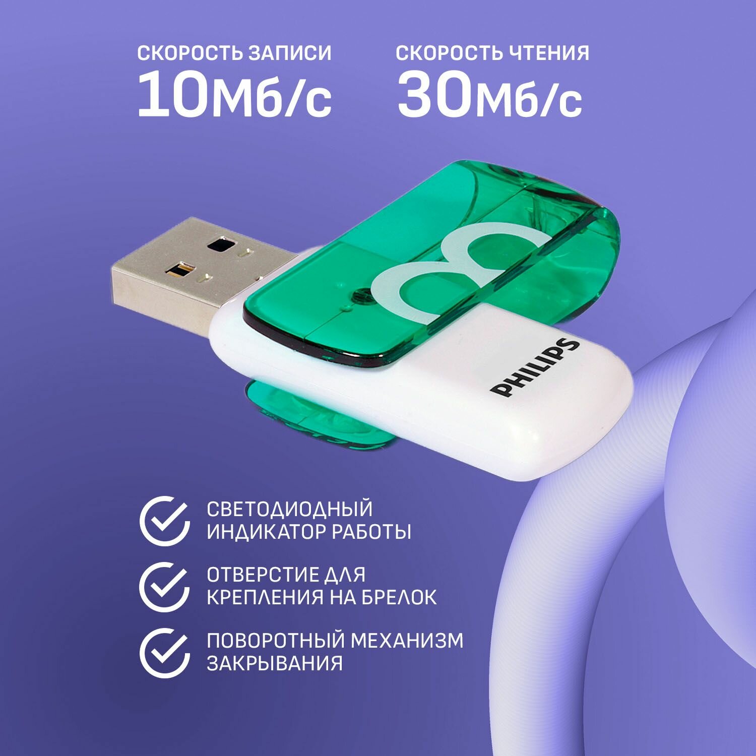 Флешка USB 2.0, PHILIPS VIVID, 8GB интересное:
