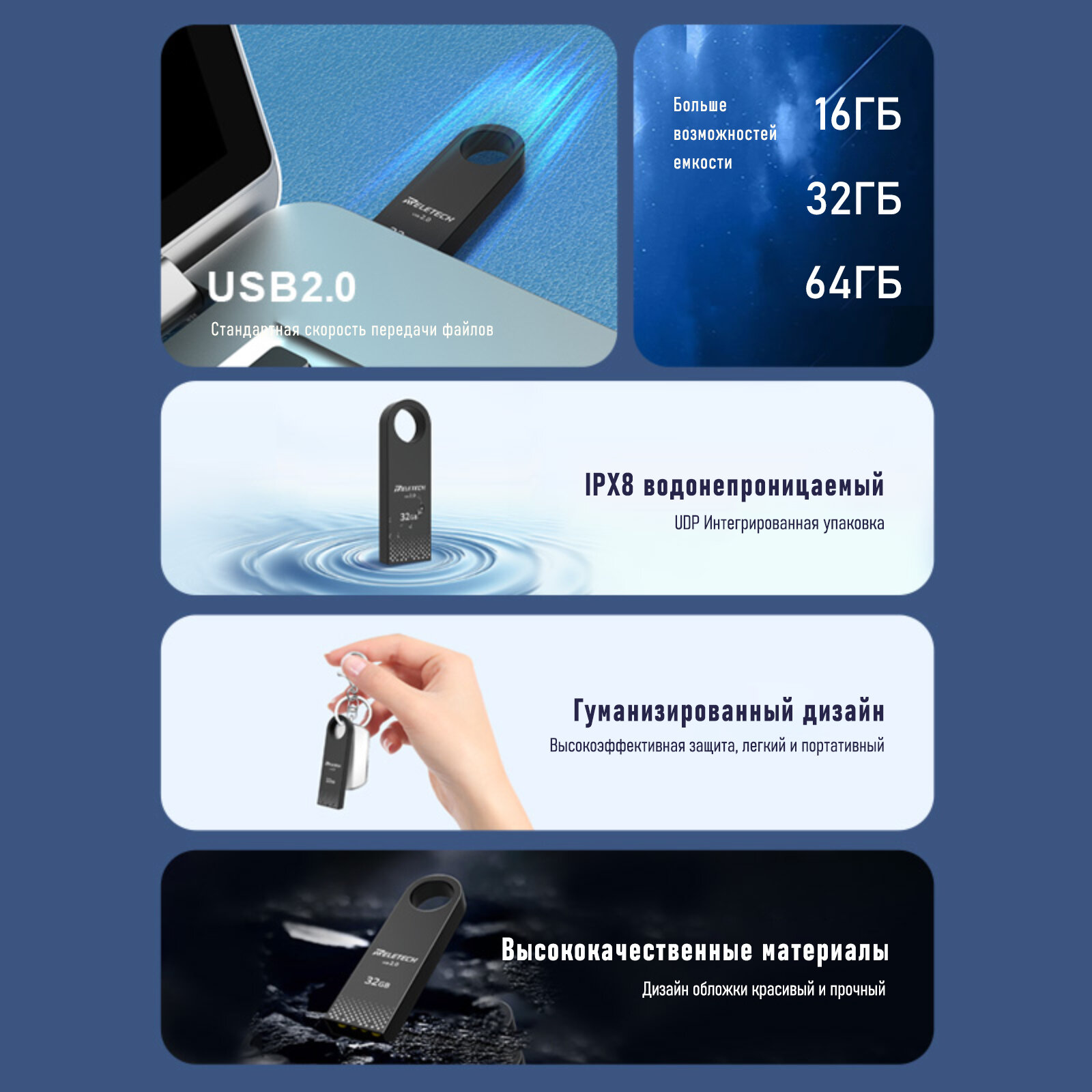 USB Флешка 64 ГБ Reletech USB 2.0 металлическая Хранение данных интересное: