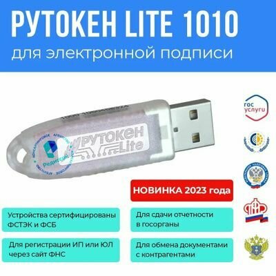 Носитель для электронной подписи "Рутокен Lite" + лицензия КриптоПро, USB 2.0, синий, 128КБ интересное: