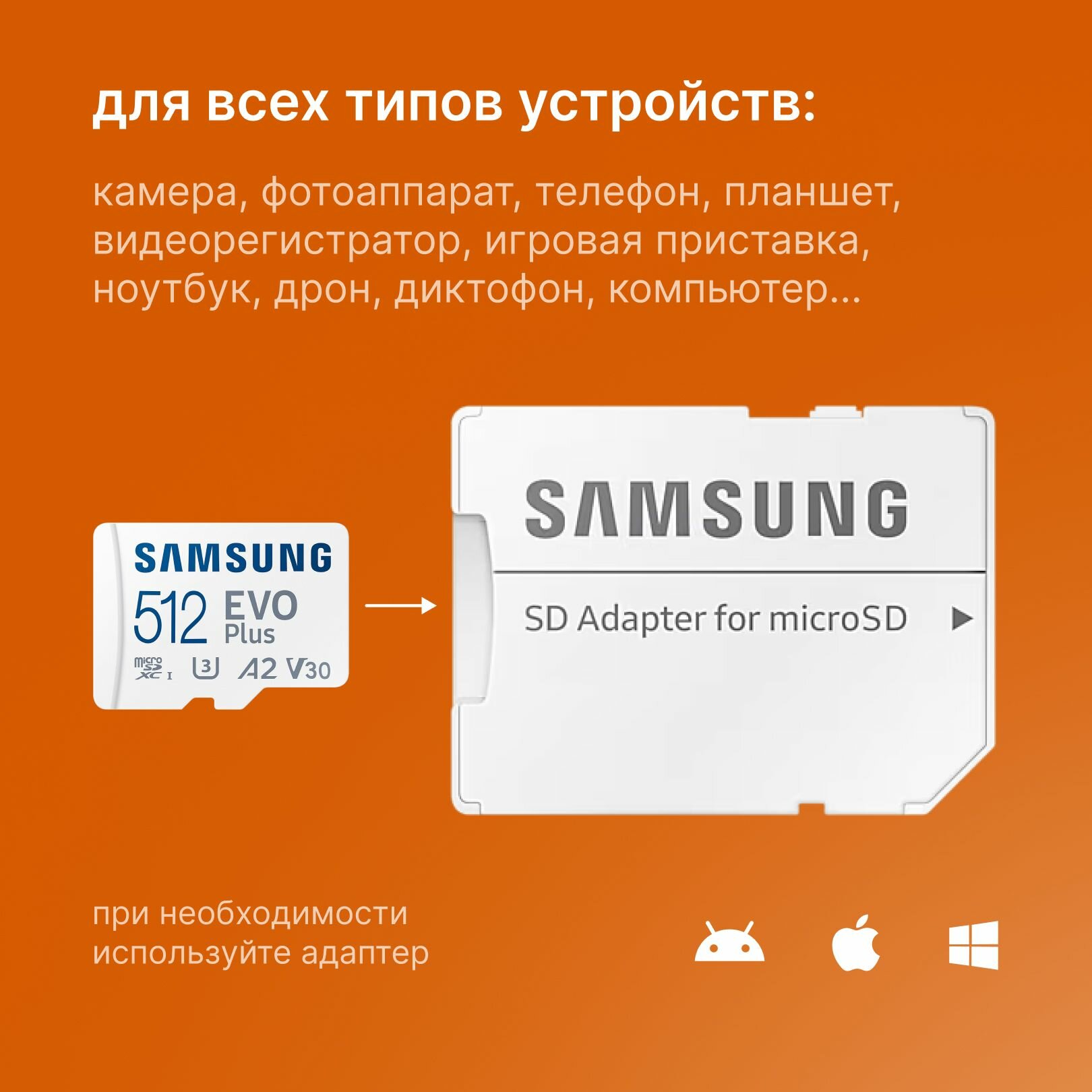 Карта памяти 2024 Micro SDXC Samsung EVO Plus 512 ГБ class 10 (MB-MC512KA/CN) интересное: