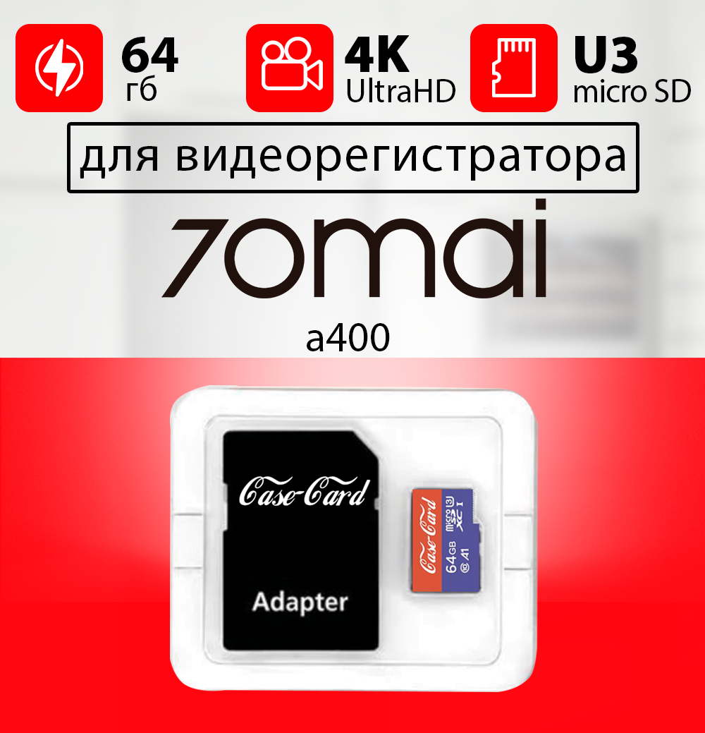 Купить Карта памяти для видеорегистратора 70mai a400 / флешка подходит для 70mai a400 64 гб Case Card 10 U3 V30 Ultra HD