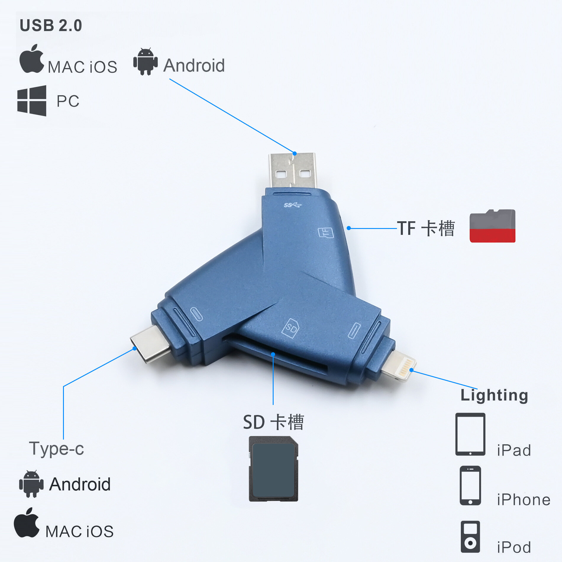 Кард-ридер NK-939, для Apple Card Reader, многофункциональный, высокоскоростной, синий