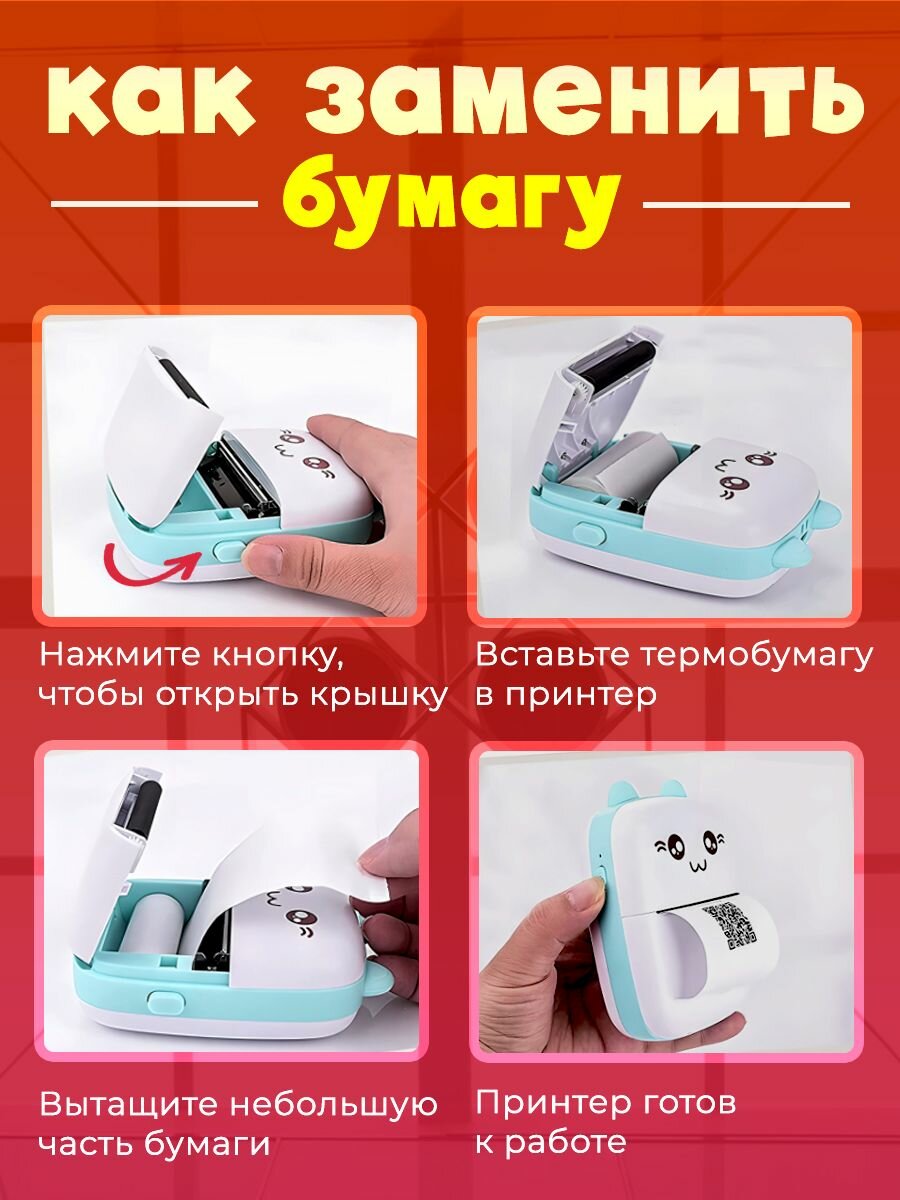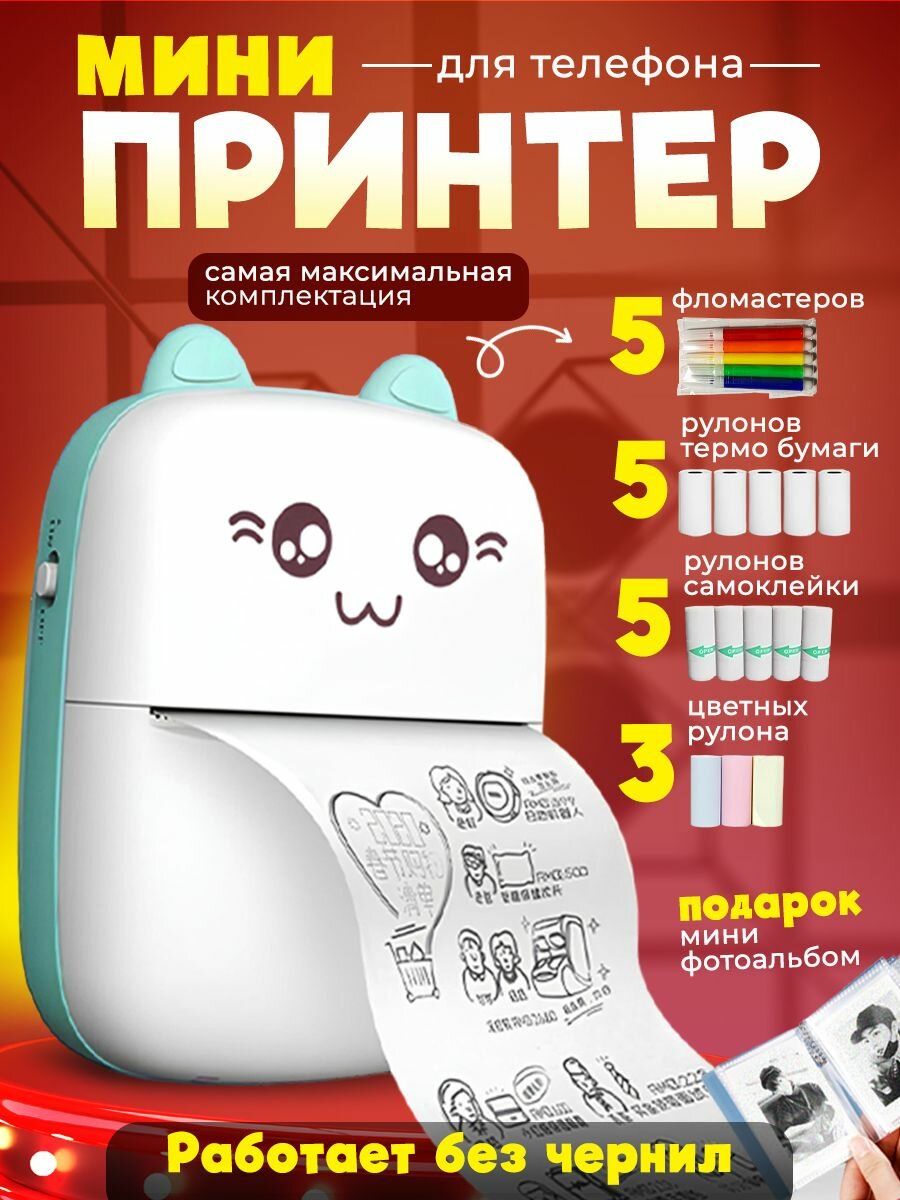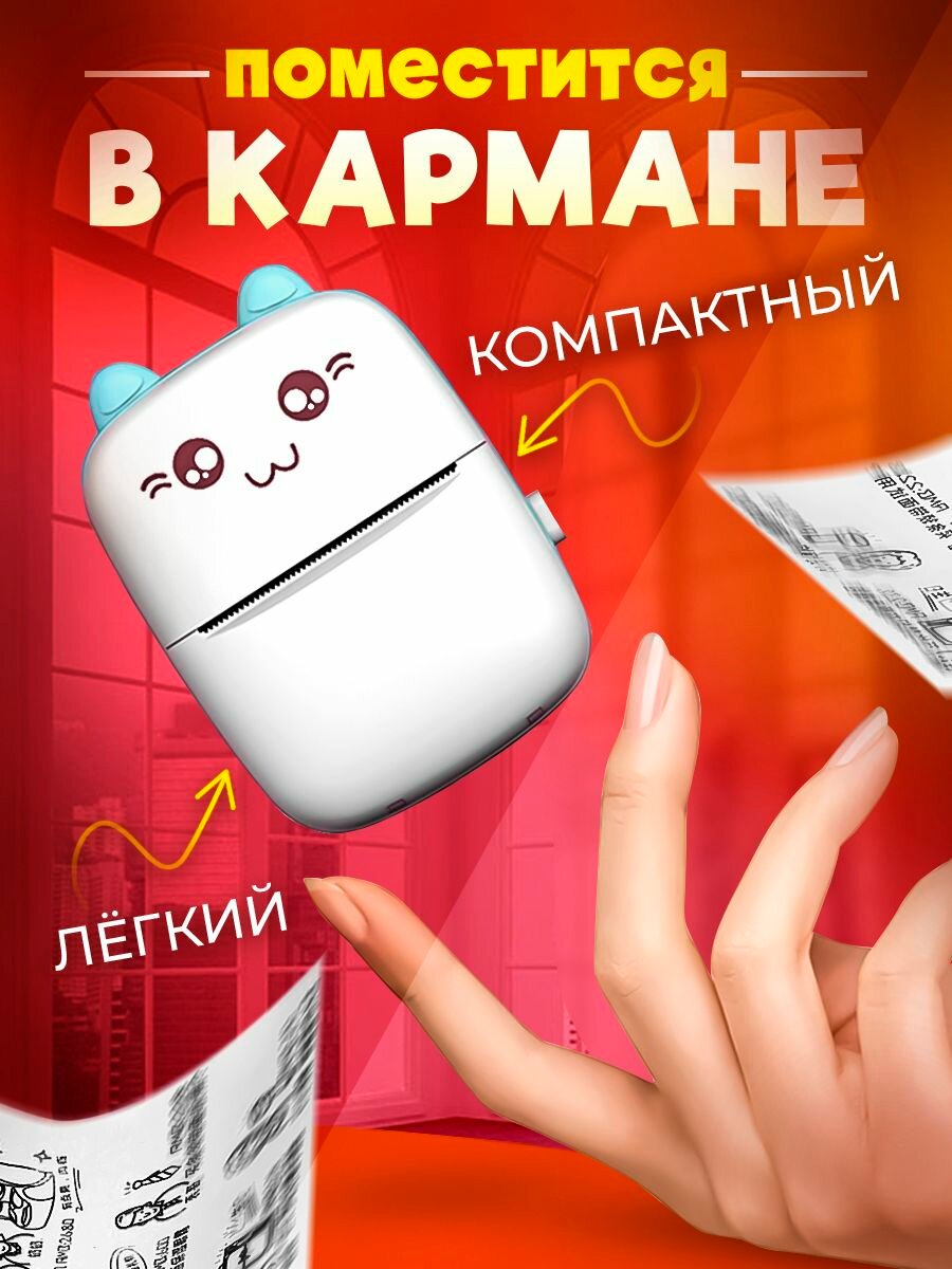 Беспроводной мини принтер для печати с телефона, карманный термопринтер, 0001-16-2, голубой интересное: