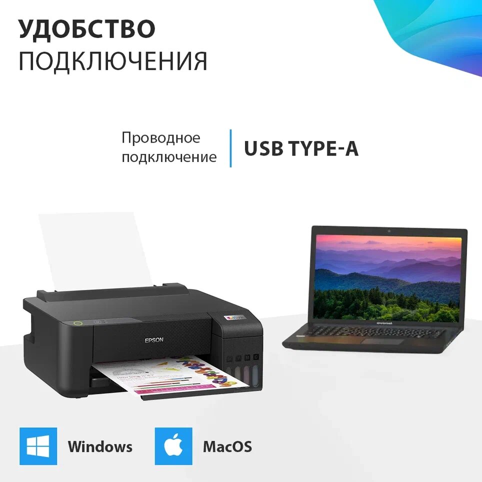Принтер цветной струйный Epson L1210 / СНПЧ, USB 2.0, черный интересное: