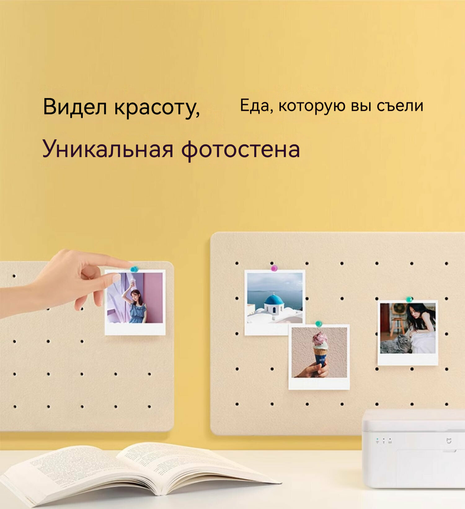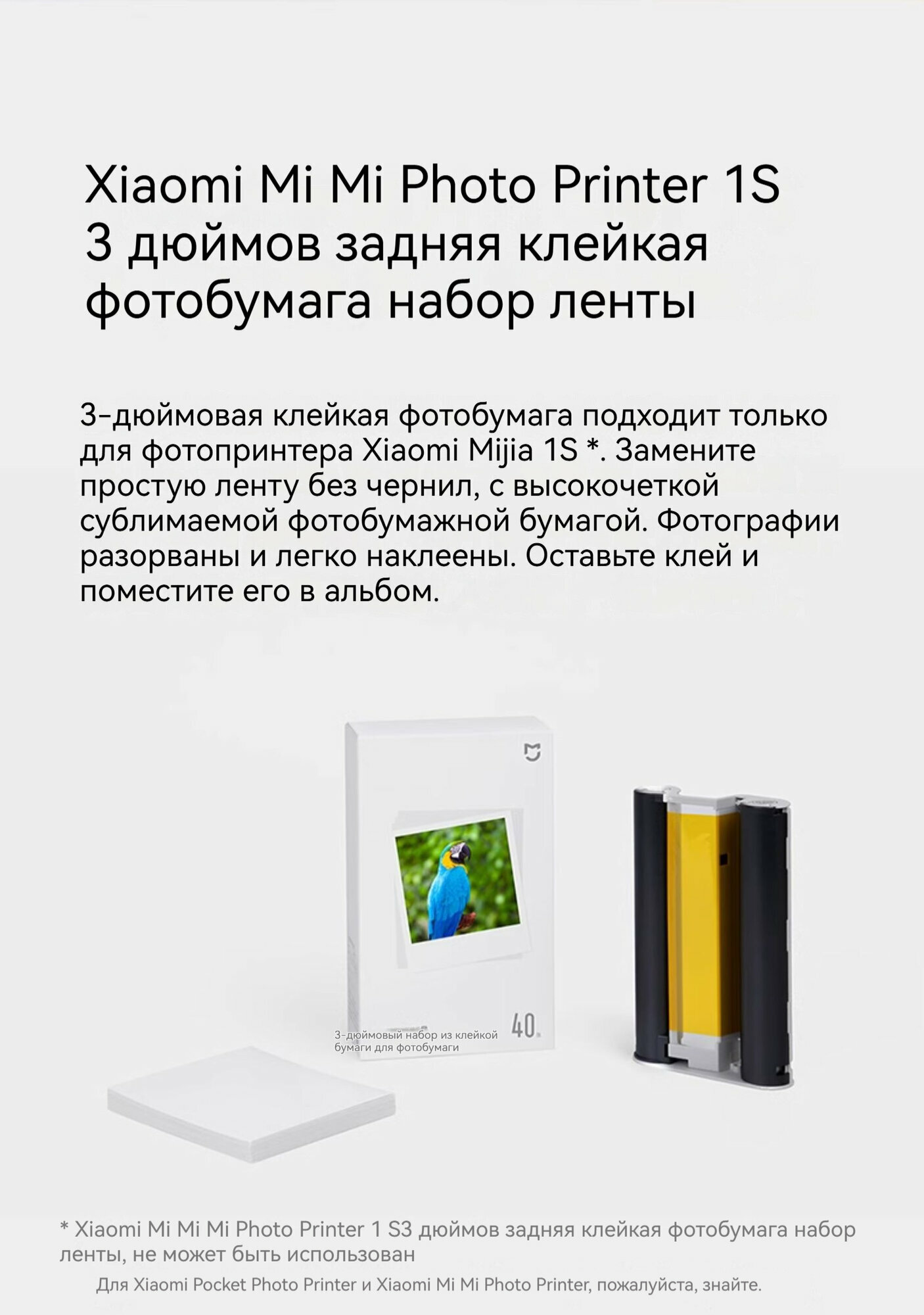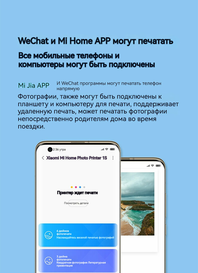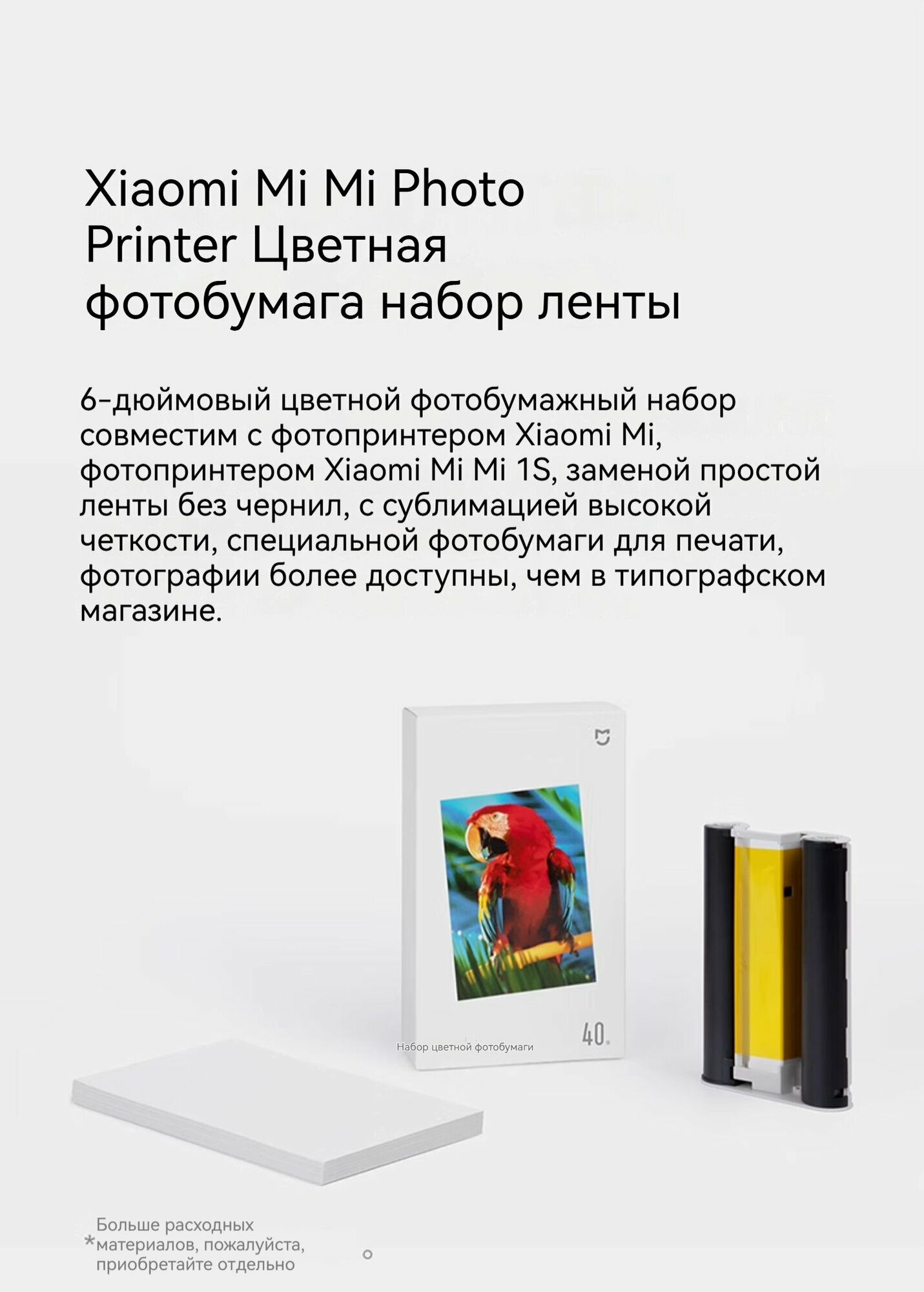 Xiaomi, фотопринтер, 1 комплект, 80 листов фотобумаги, два картриджа, 300 точек на дюйм, 16,7 млн цветов, 256 уровней каждого цвета, белый