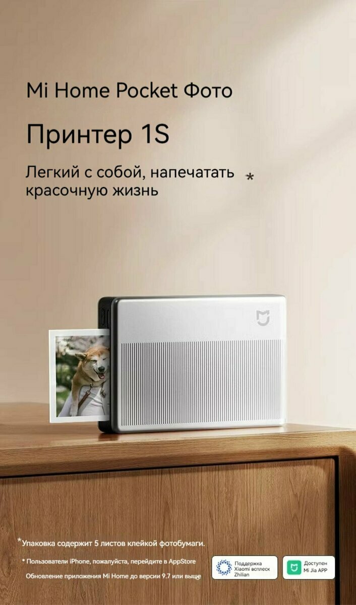 Портативный фотопринтер Xiaomi Mijia Pocket Photo Printer 1S (MJKDDYJ02HT), CN интересное: