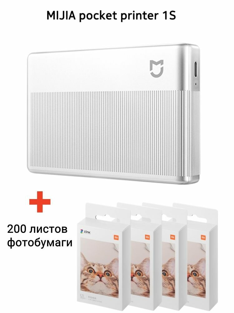 Купить Новый Xiaomi Mijia pocket photo printer 1S CN and 200pcs paper