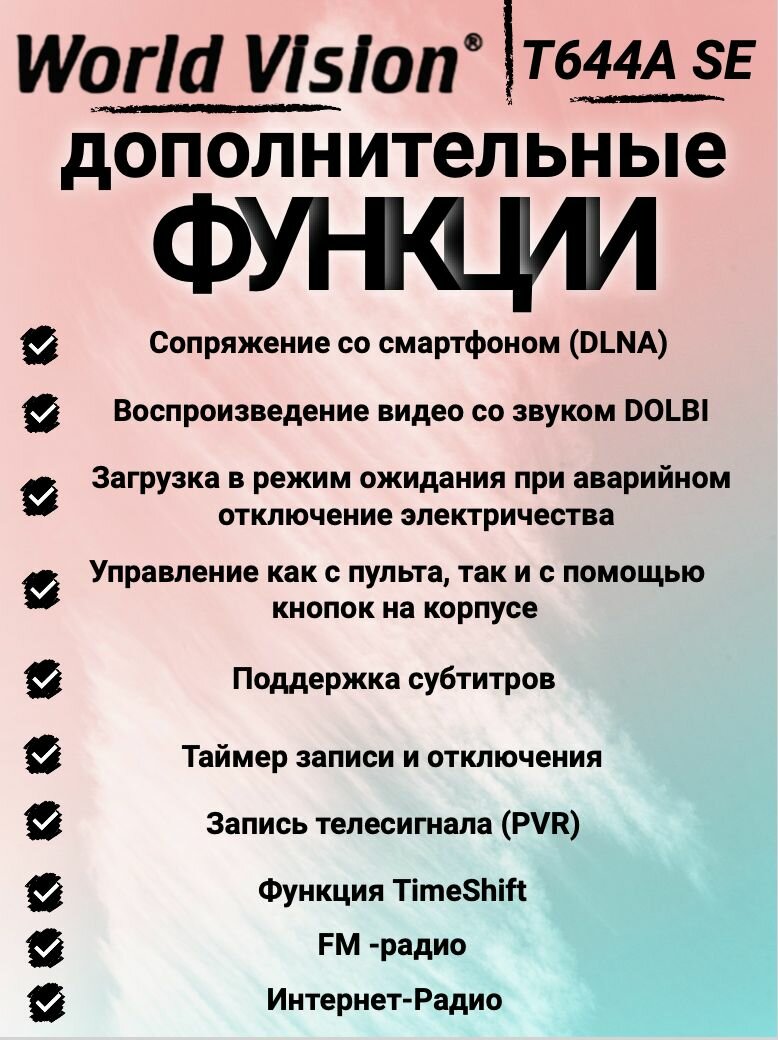 Цифровая телевизионная приставка World Vision DVB-T2, C WV T644A SE + HDMI кабель интересное: