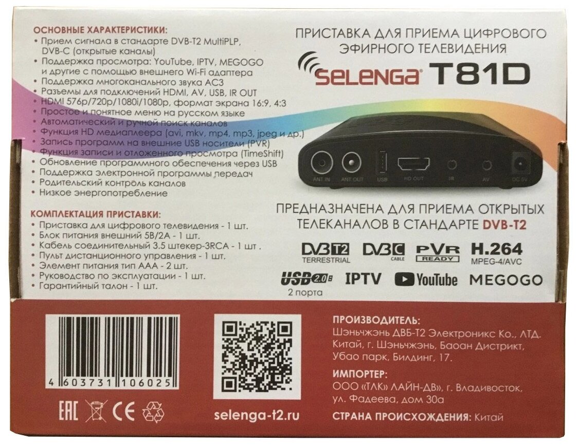 TV-тюнер Selenga T81D (2xUSB, Ant in, Ant out, HDMI, AV out RCA) интересное: