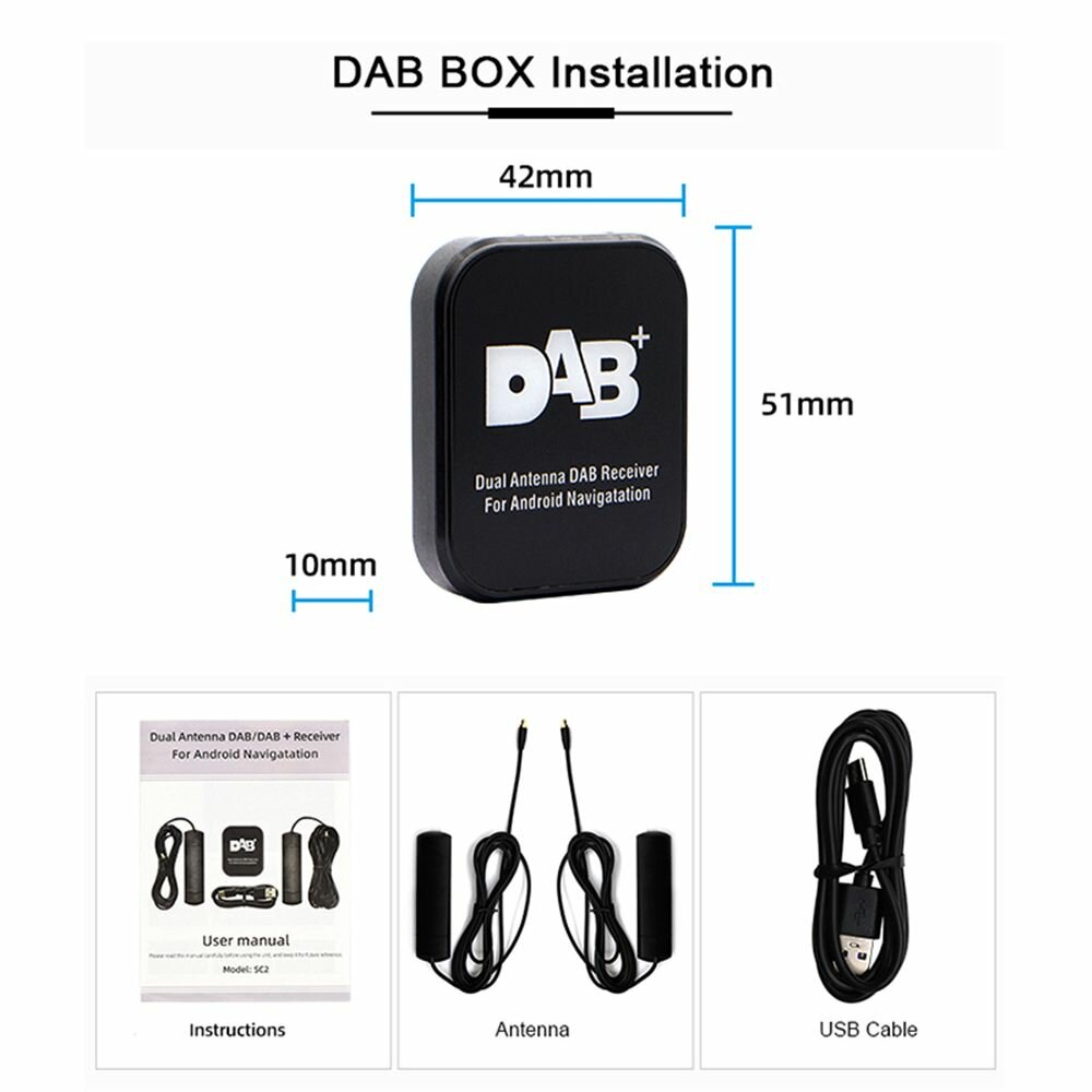 Купить Цифровой DAB+ адаптер-тюнер для автомобиля с двумя антеннами, аудио радиобокс, USB-приемник, антенна для Android