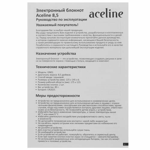 Купить 8.5" Электронный блокнот Aceline GN02 черный