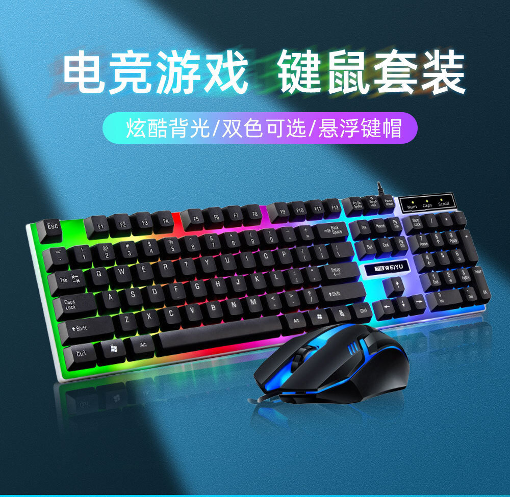 Игровой набор клавиатуры и мыши, проводной, с подсветкой, черный