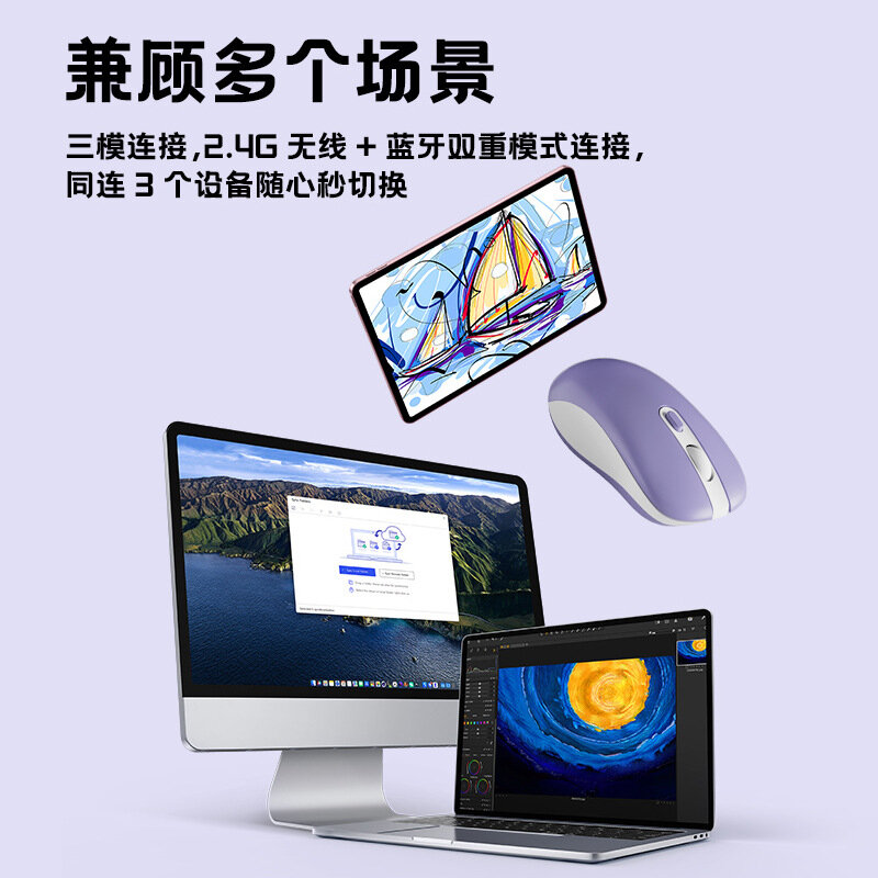 Мышь C4025, перезаряжаемая, с тремя режимами, фиолетовая