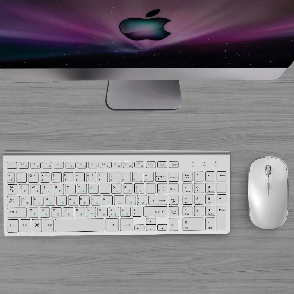 Aopei Беспроводная клавиатура и мышь, серебристый, белый, Keyboard Mouse Combo интересное: