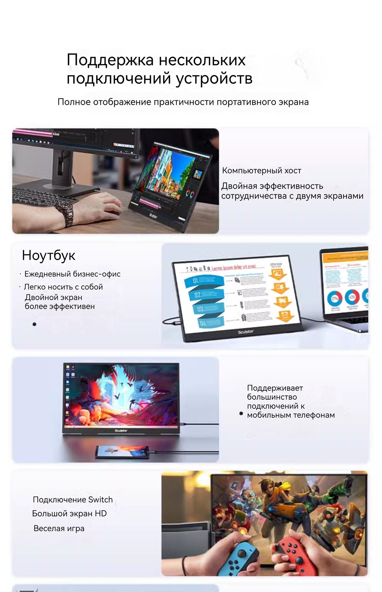 Портативный дисплей Sculptor 1920X1080/180 Гц sRGB 100% 16 дюймов интересное: