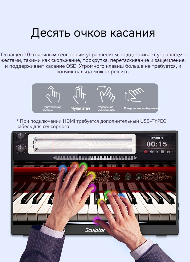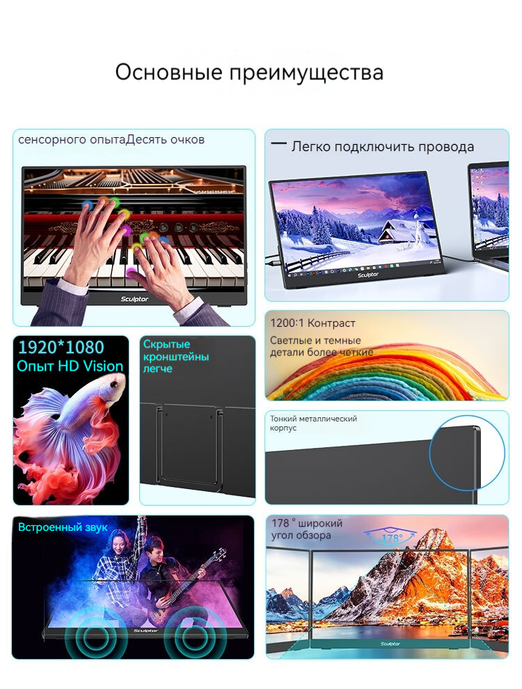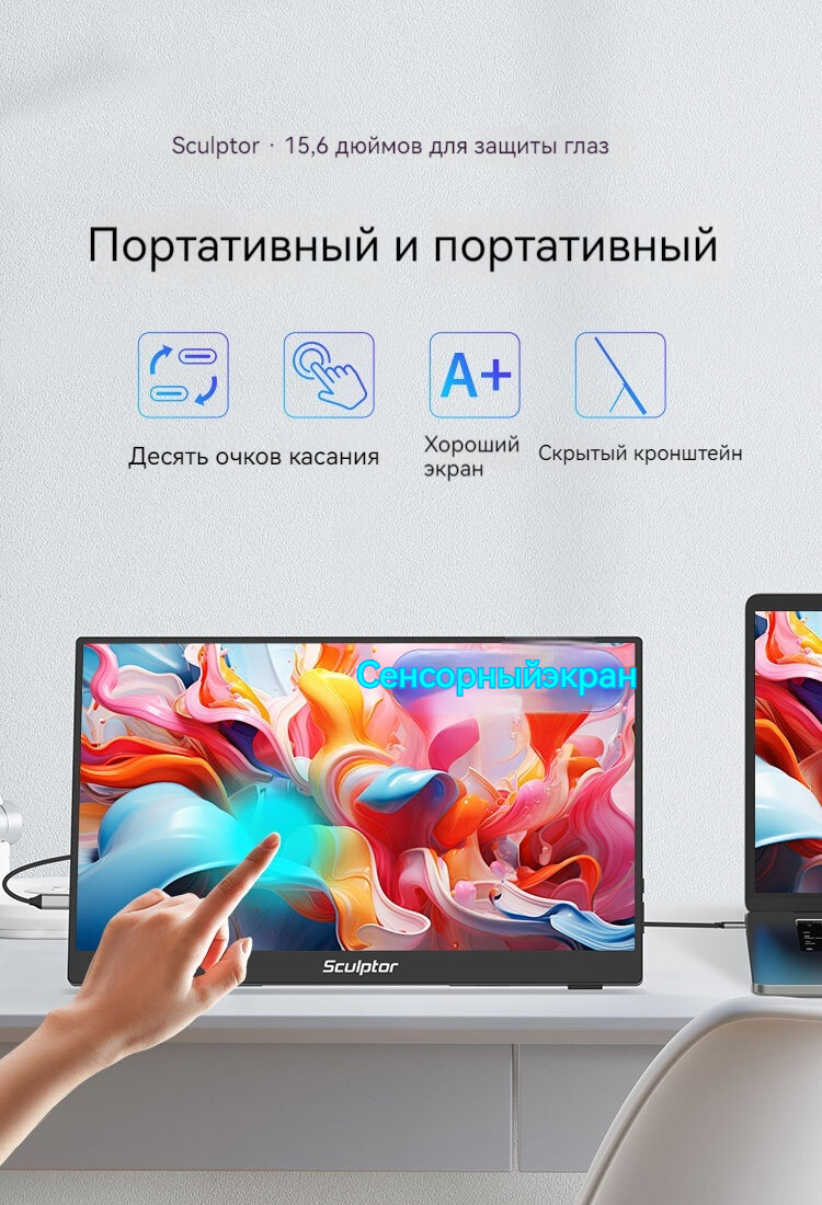 Портативный сенсорный дисплей Sculptor 1920X1080/60 Гц 15,6 дюймов интересное:
