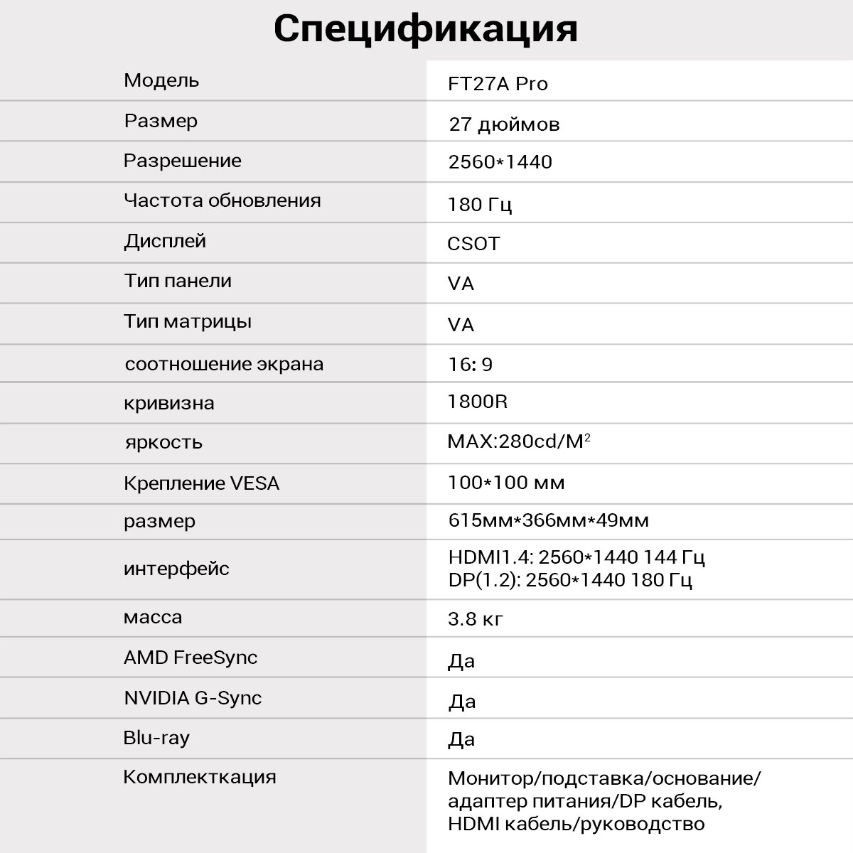 Монитор ECOVINKA "FT27A Pro", 27", 180Гц, 2560х1440, изогнутый, черный интересное: