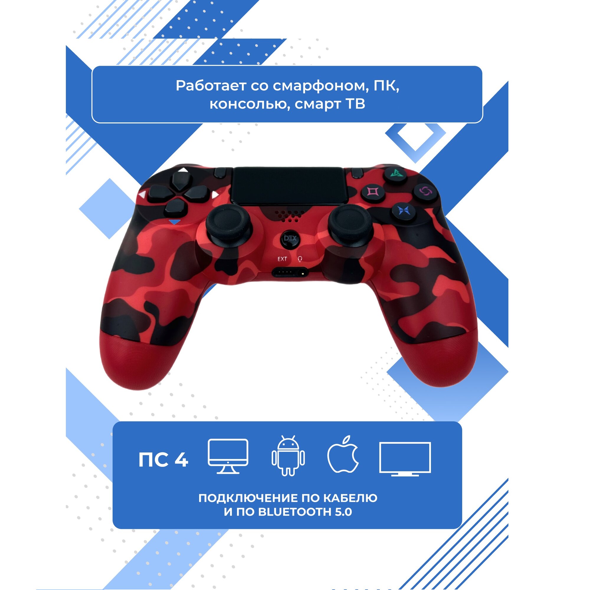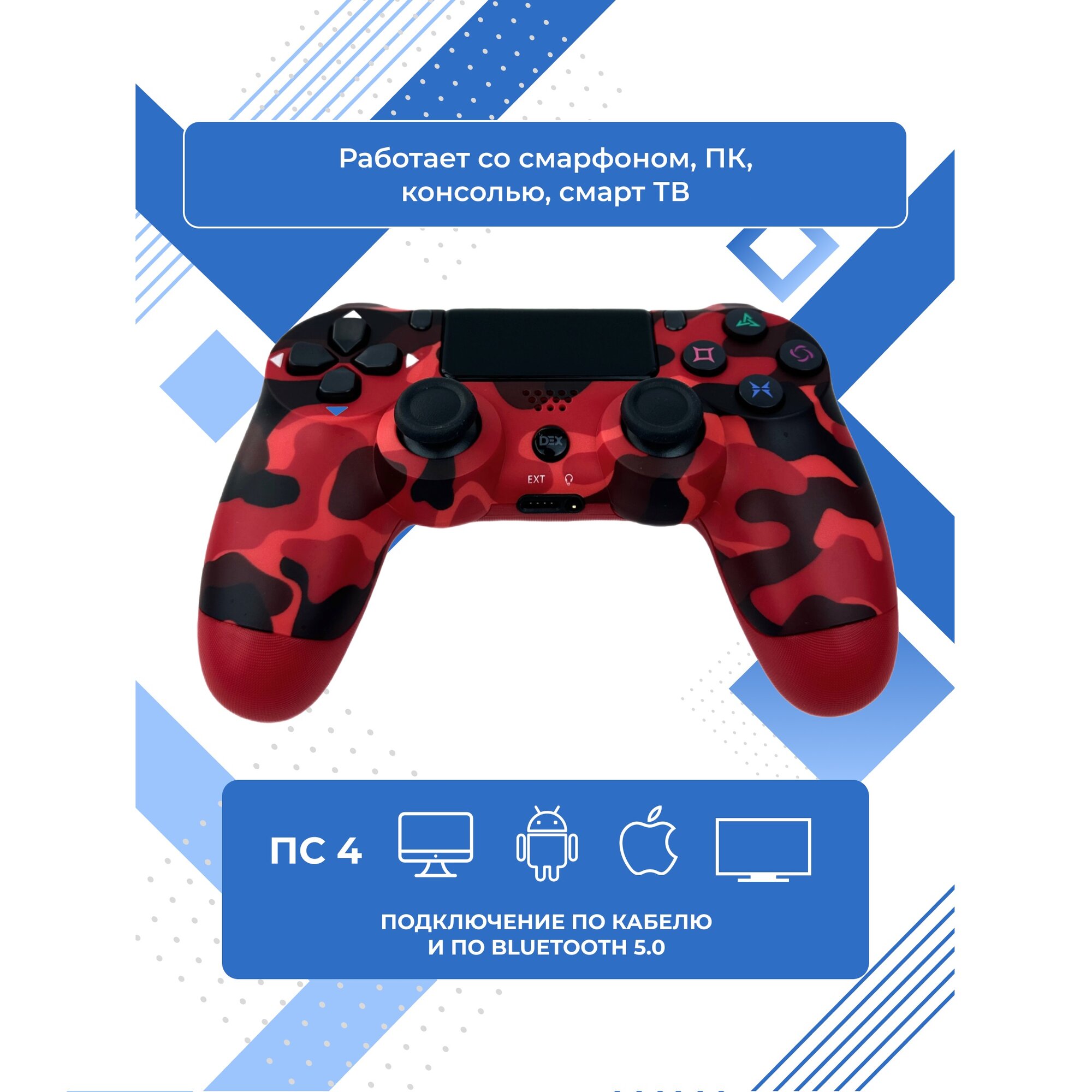 Геймпад джойстик для PS4, ПК, Android, iOS, беспроводной, Bluetooth, виброотдача, красный камуфляж интересное:
