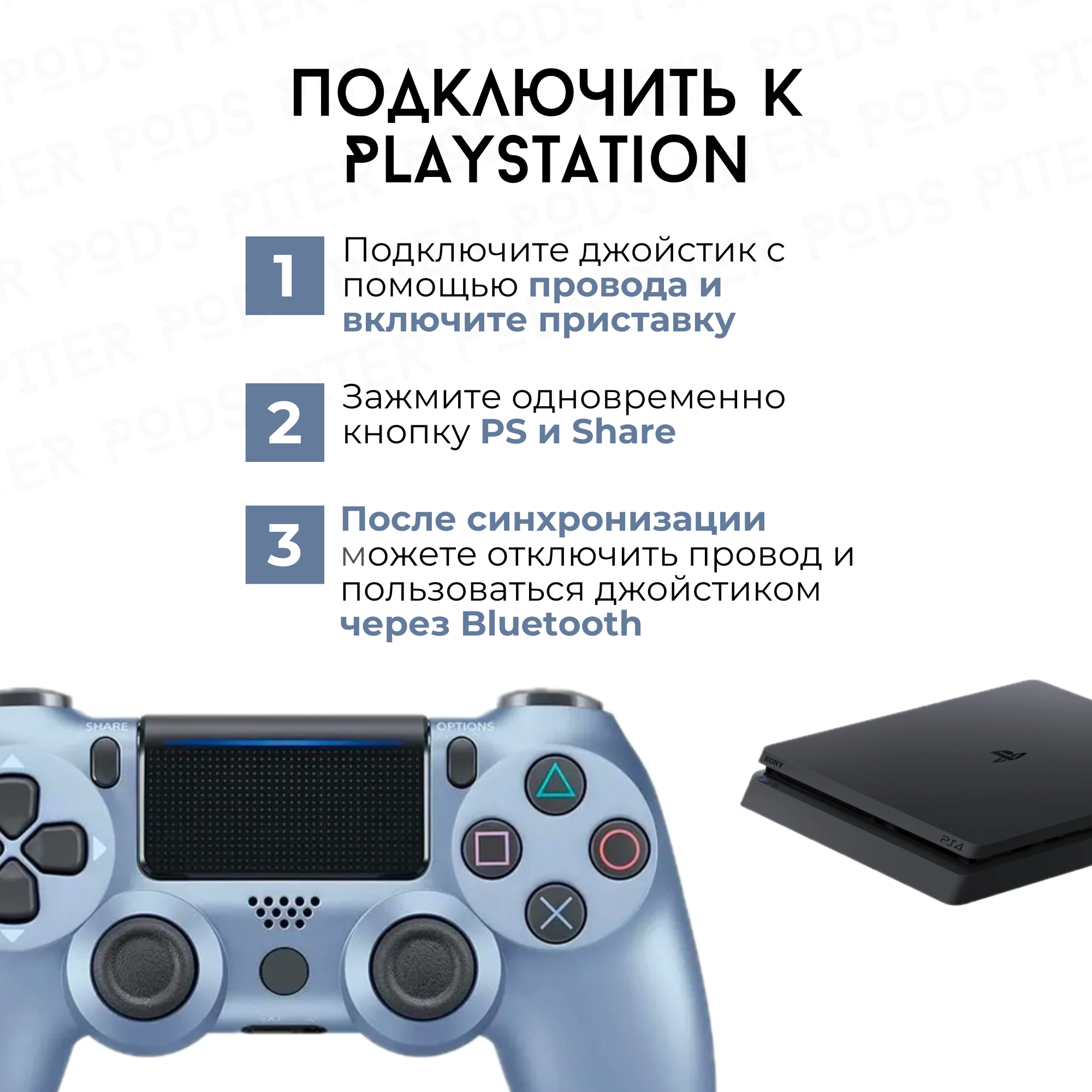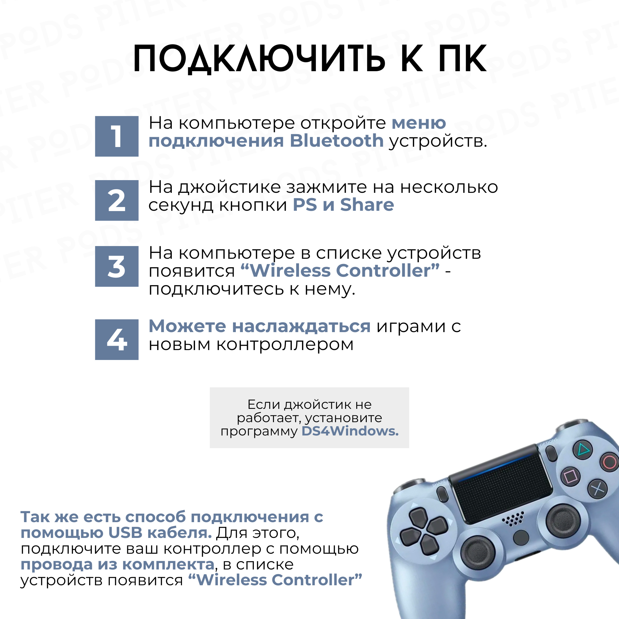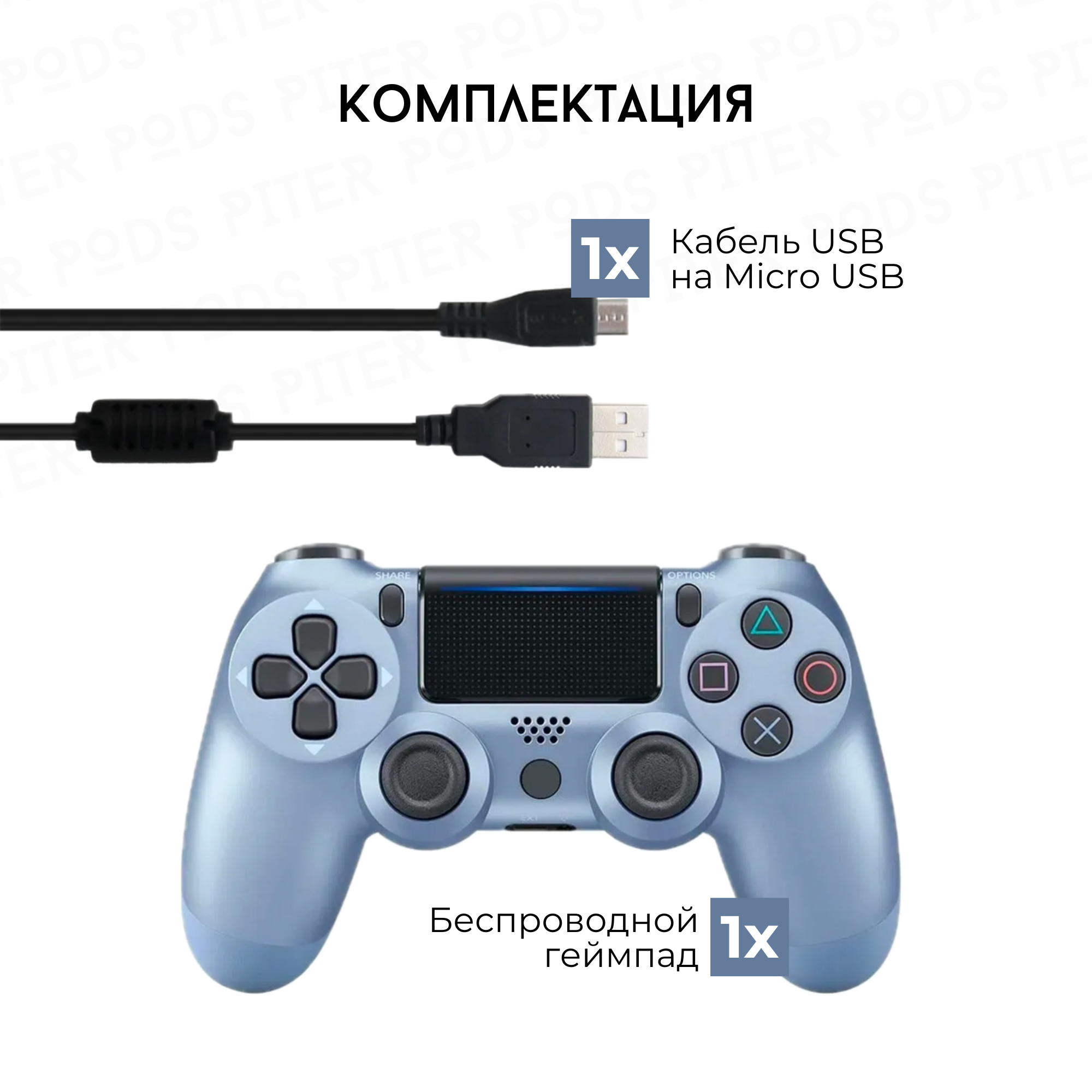 Купить Беспроводной геймпад для PS4 с зарядным кабелем, Голубой / Bluetooth / Джойстик для PS и ПК