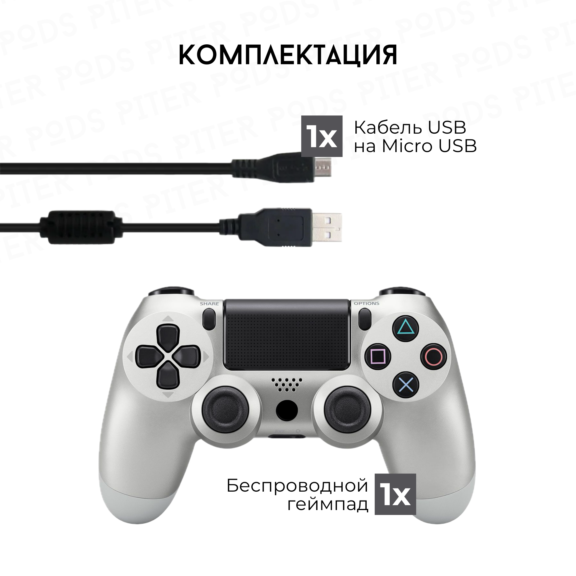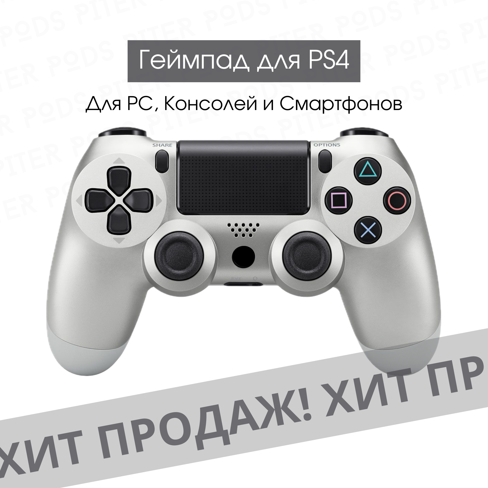 Купить Беспроводной геймпад для PS4 с зарядным кабелем, Серебро / Bluetooth / Джойстик для PS и ПК
