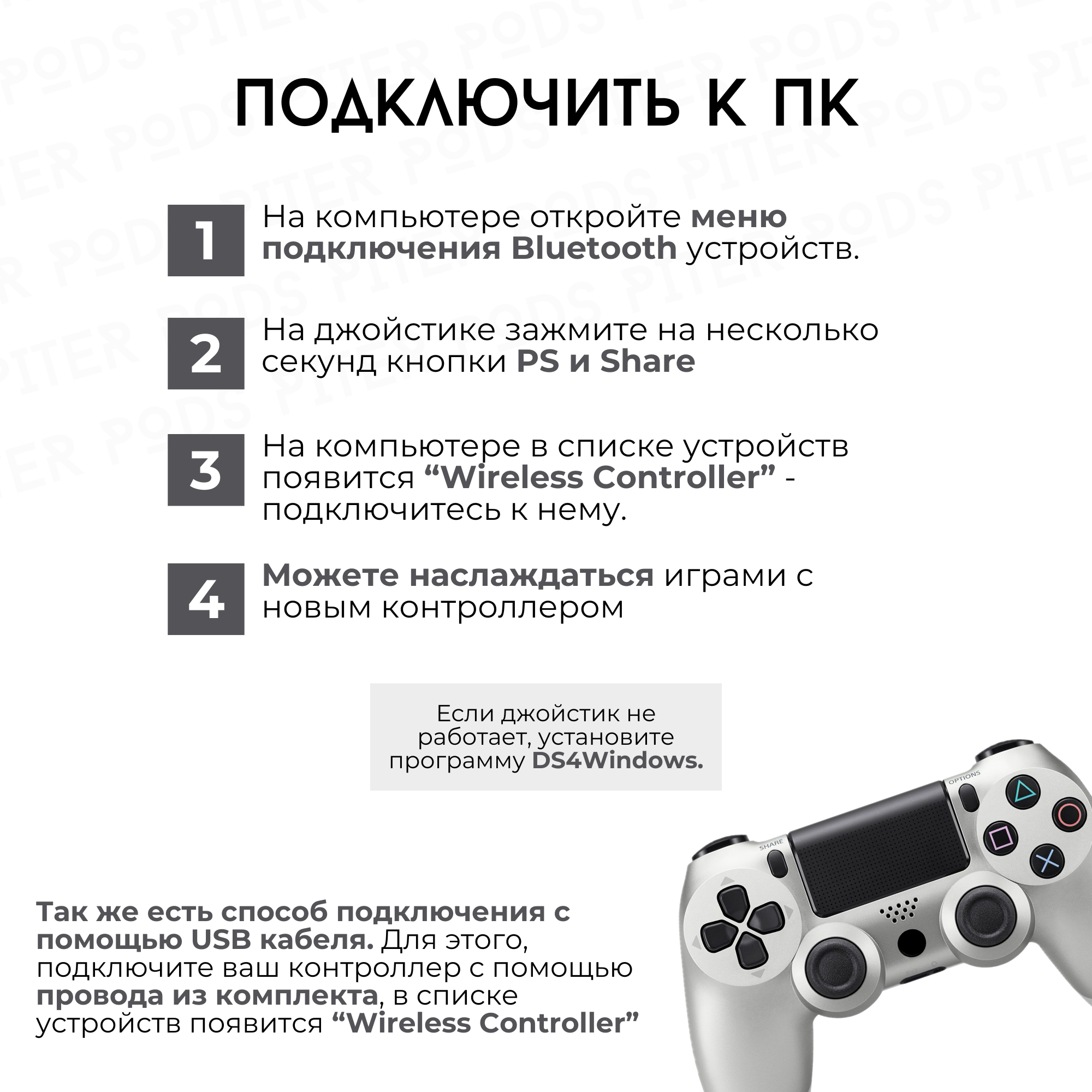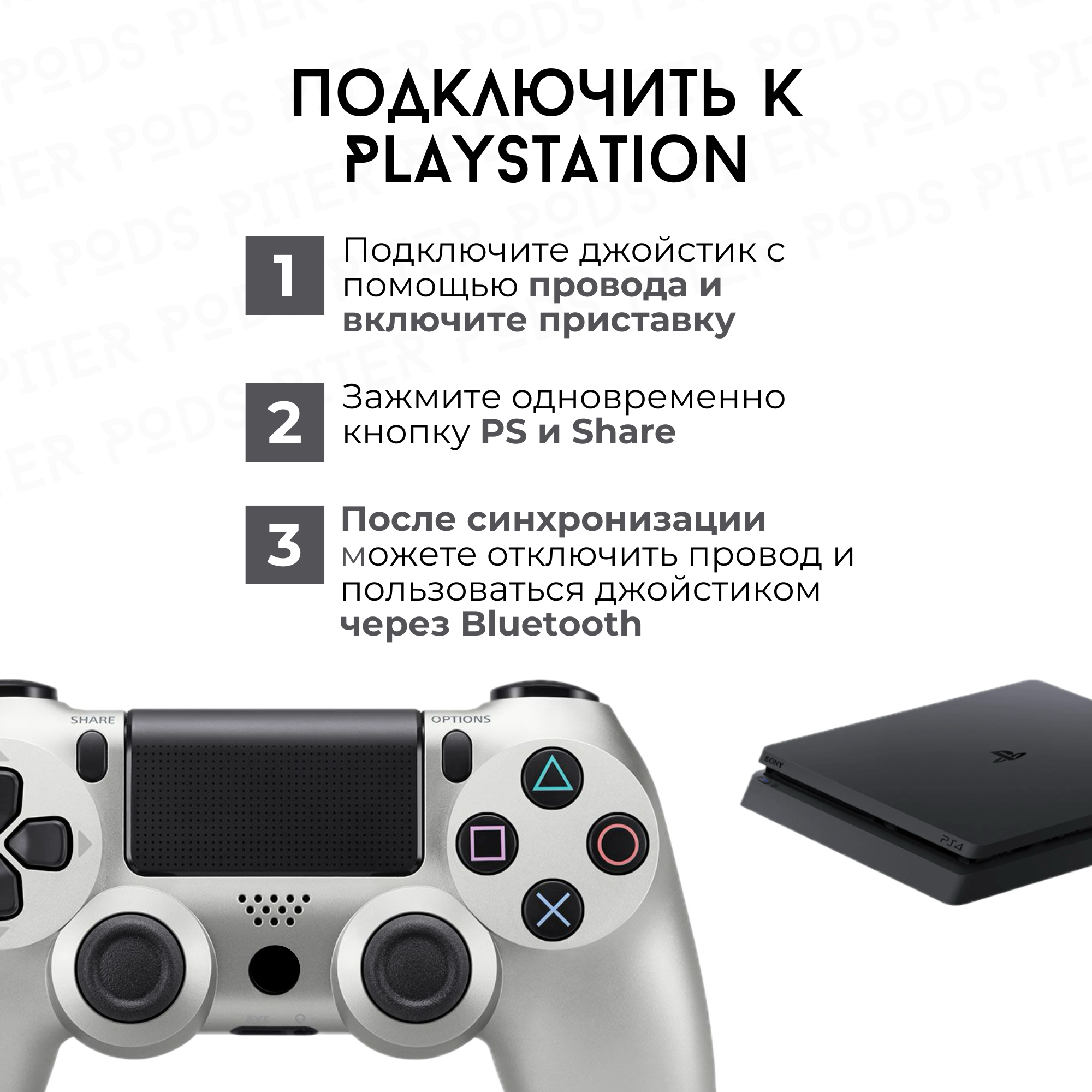 СохранитьБеспроводной геймпад для PS4 с зарядным кабелем, Серебро / Bluetooth / Джойстик для PS и ПК интересное: