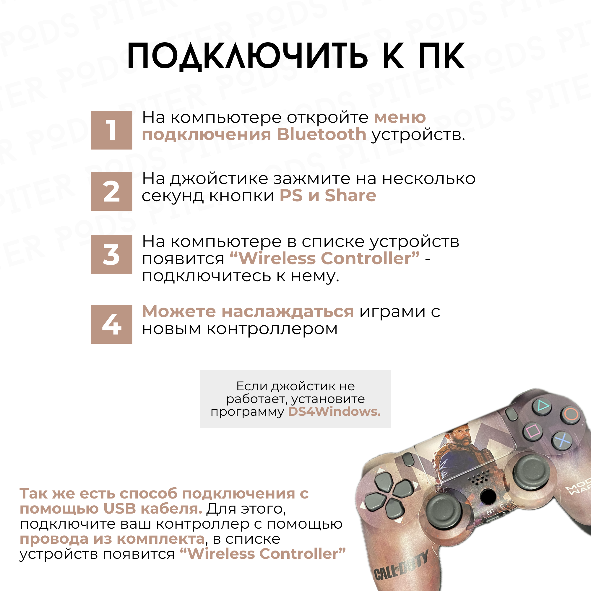 Ниже Вы можете прочитать отзывы на Беспроводной геймпад для PS4 с зарядным кабелем, CALL OF DUTY / Bluetooth / Джойстик для PS и ПК, ознакомится с подробными характеристиками, посмотреть интересные обзоры и фотографии на Беспроводной геймпад для PS4 с зарядным кабелем, CALL OF DUTY / Bluetooth / Джойстик для PS и ПК.