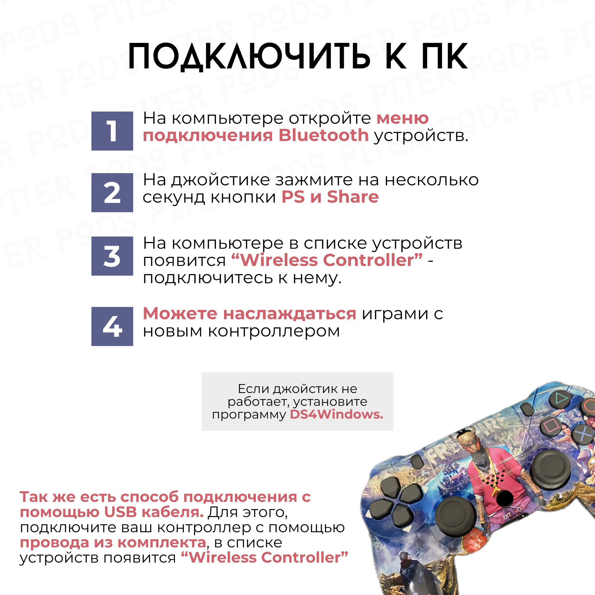 Ниже Вы можете прочитать отзывы на Беспроводной геймпад для PS4 с зарядным кабелем, FREE FIRE / Bluetooth / Джойстик для PS и ПК, ознакомится с подробными характеристиками, посмотреть интересные обзоры и фотографии на Беспроводной геймпад для PS4 с зарядным кабелем, FREE FIRE / Bluetooth / Джойстик для PS и ПК.