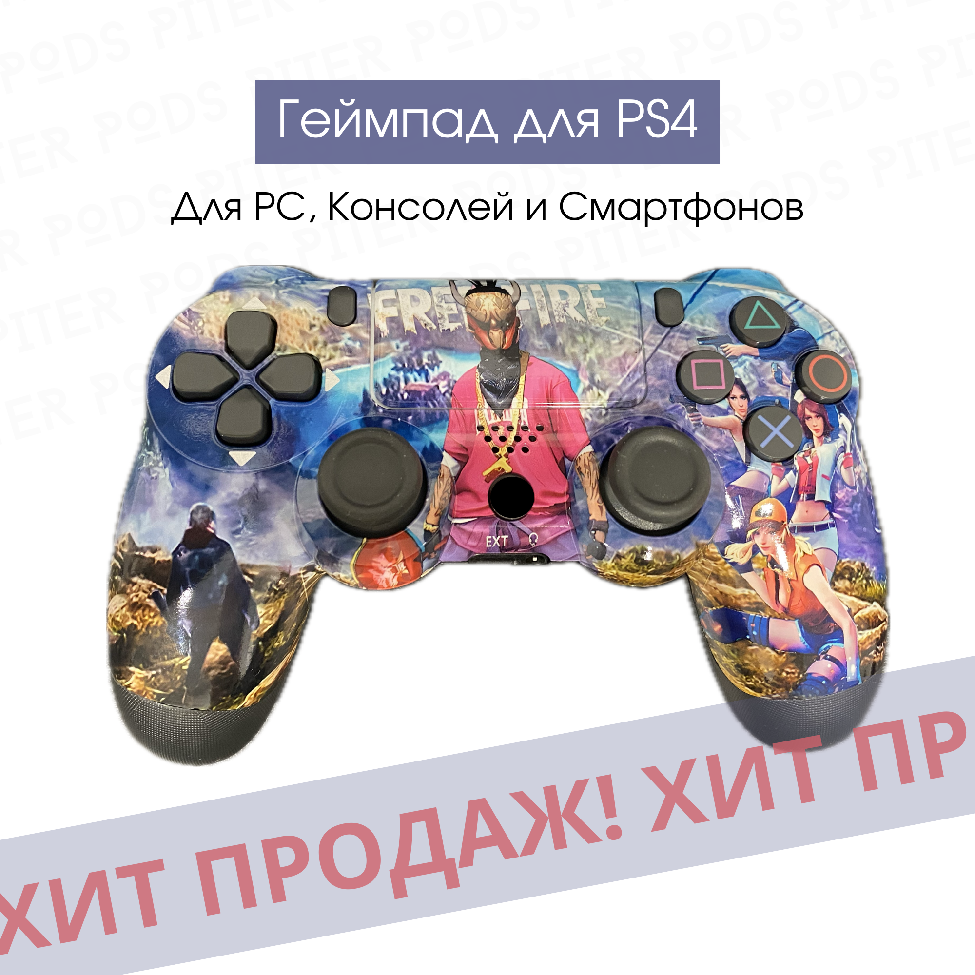 Купить Беспроводной геймпад для PS4 с зарядным кабелем, FREE FIRE / Bluetooth / Джойстик для PS и ПК