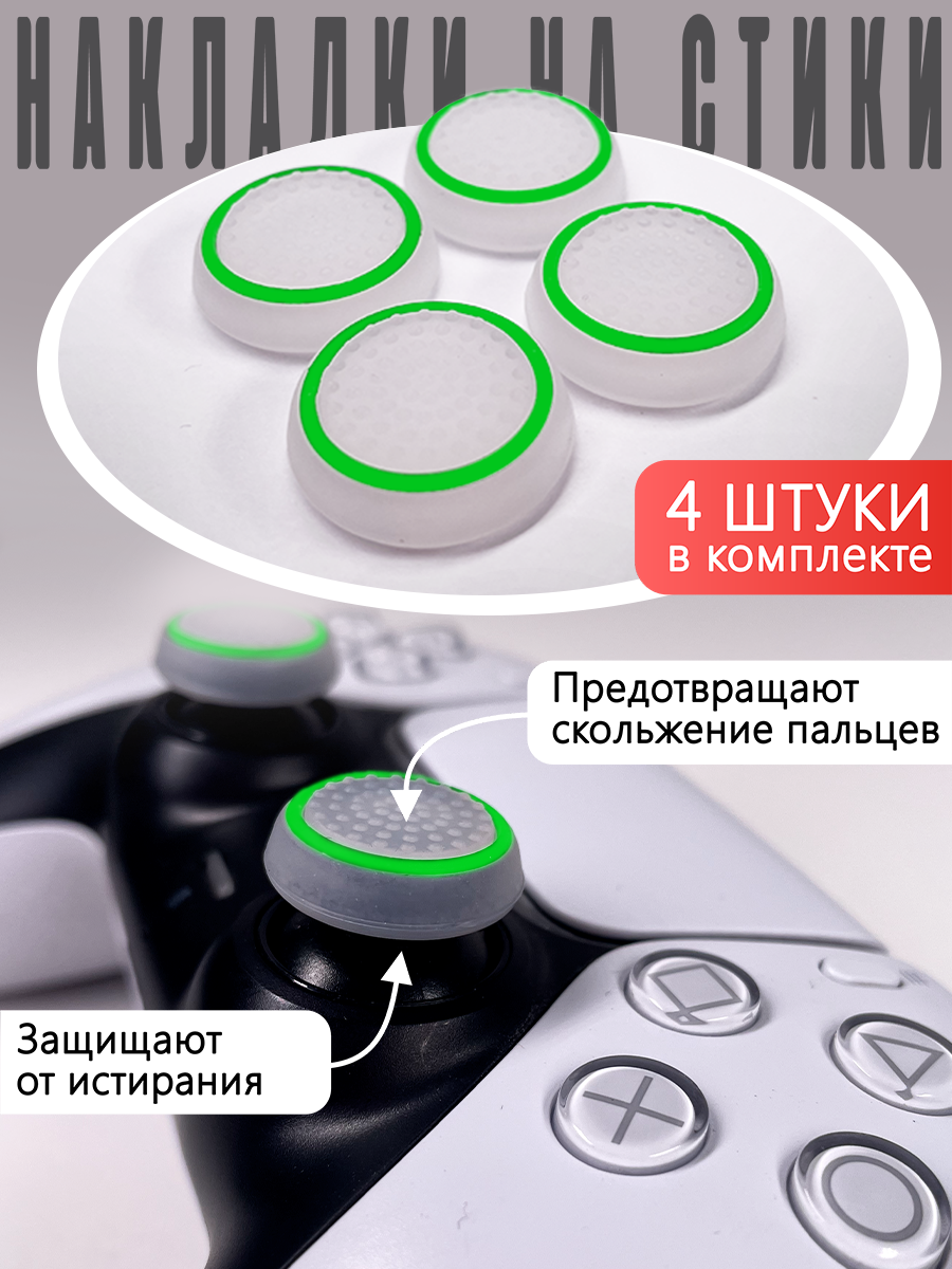Насадки Thumb Grips для PS5, PS4, PS3, Xbox 360. Зеленый круг на Белом интересное: