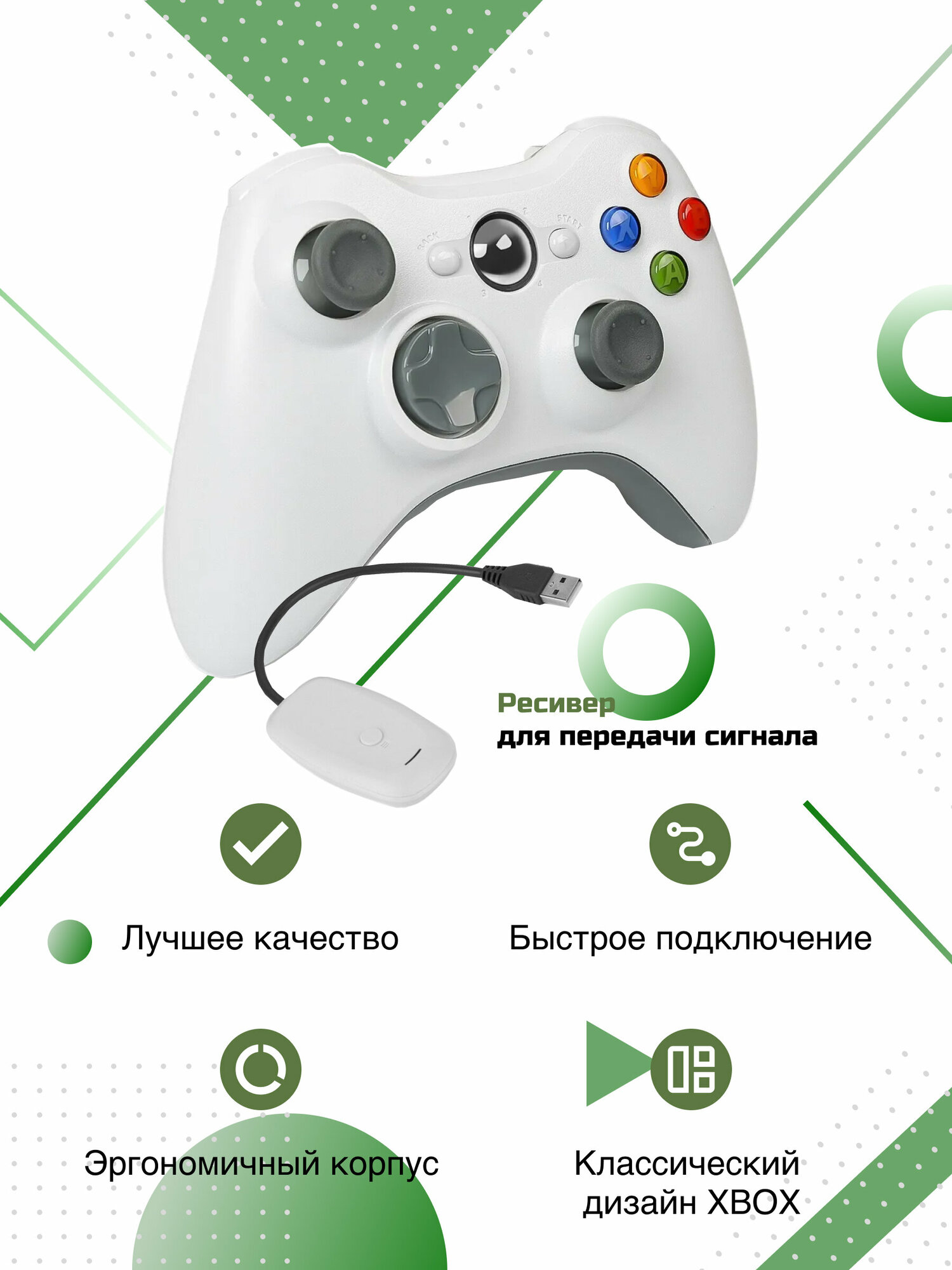 Геймпад/джойстик для Microsoft Xbox 360/ПК/PS3, беспроводной, светло серый, 1шт интересное: