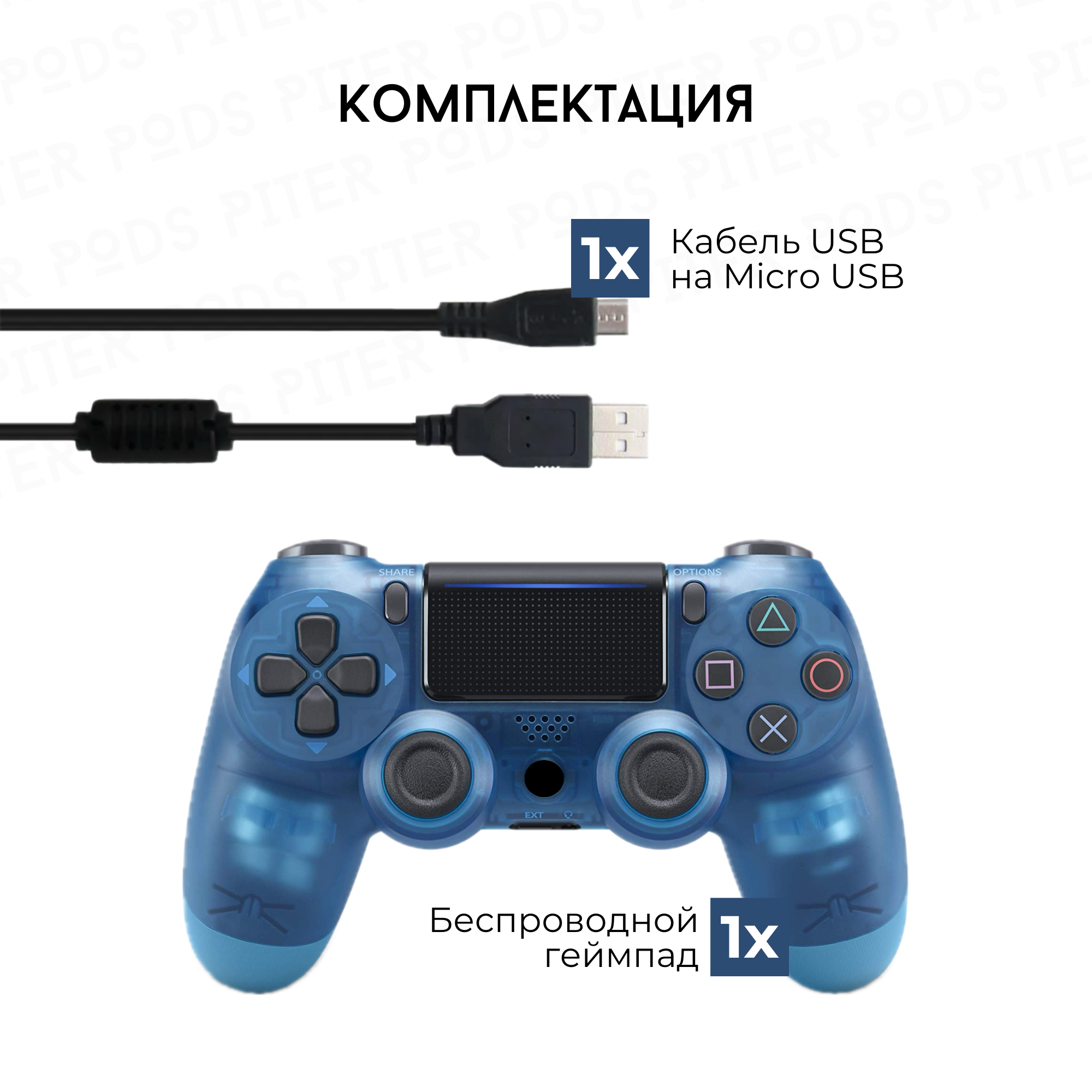 Купить Беспроводной геймпад для PS4 с зарядным кабелем, Синий-Кристалл / Bluetooth / Джойстик для PS и ПК