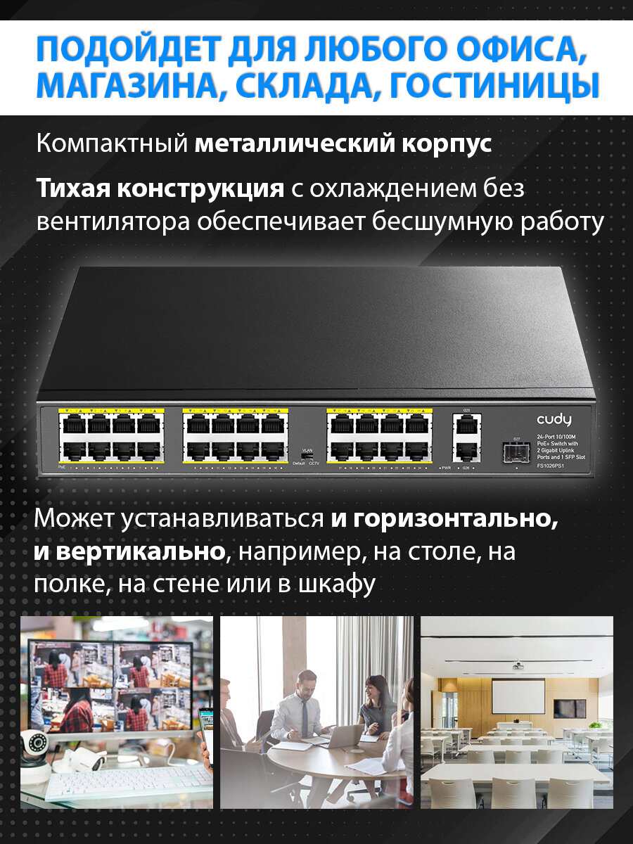 Сетевой коммутатор CUDY FS1026PS1 черный интересное: