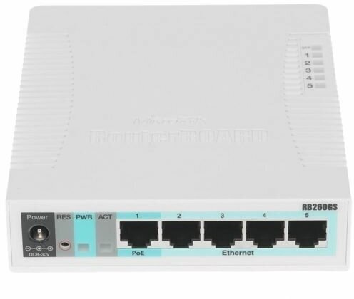 MikroTik CSS106-5G-1S Коммутатор управляемый RouterBOARD 260GS, 5x1 Гбит/с, 1xSFP, настольный интересное: