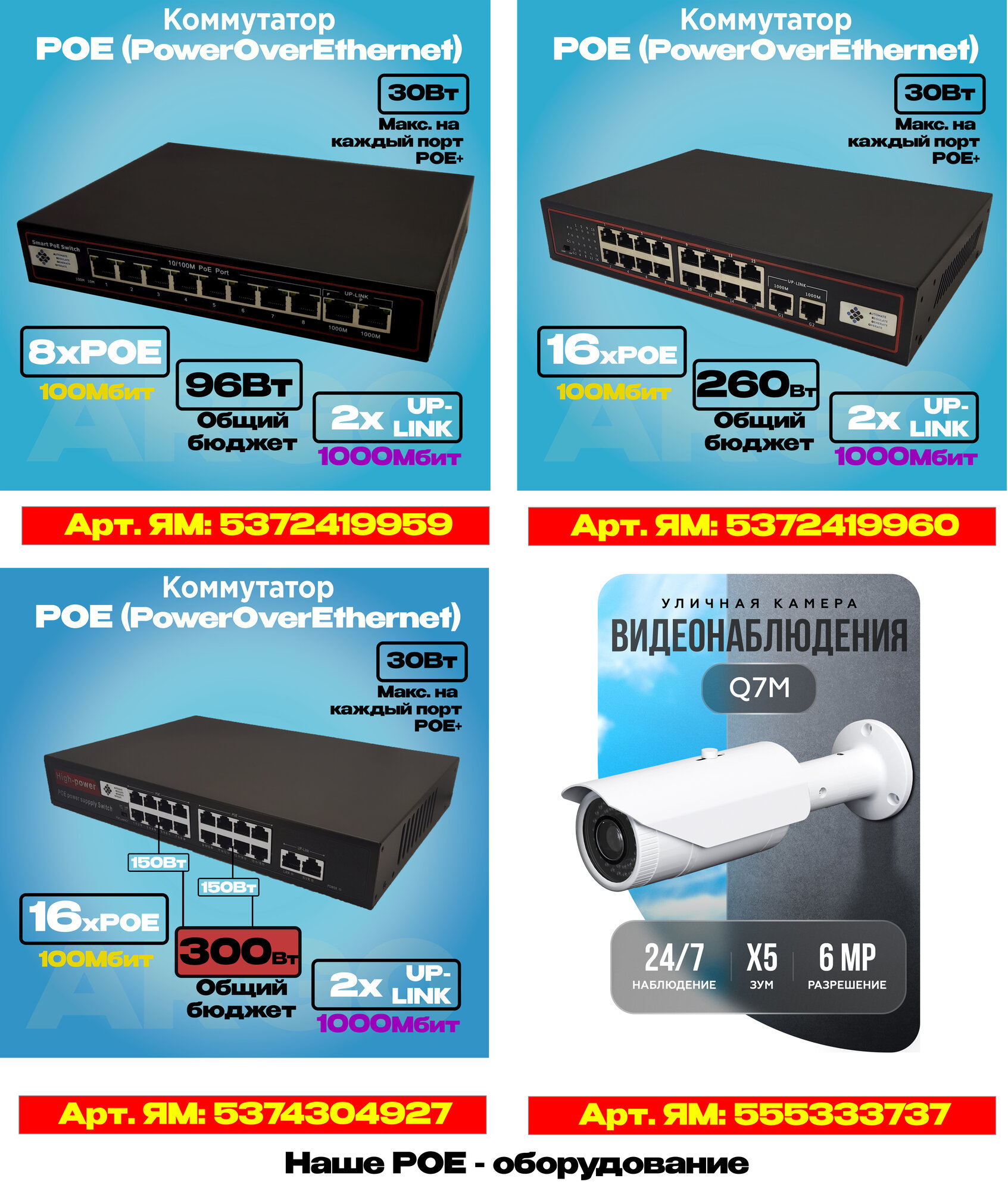 Коммутатор ARGO 8хPOE(100Мбит) + 2x(1ГБит-uplink) 96Вт интересное: