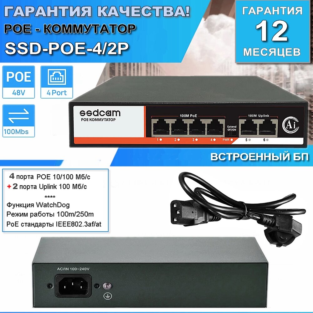 Коммутатор SSDCAM POE-4/2P для подключения IP-видеокамер по PoE интересное: