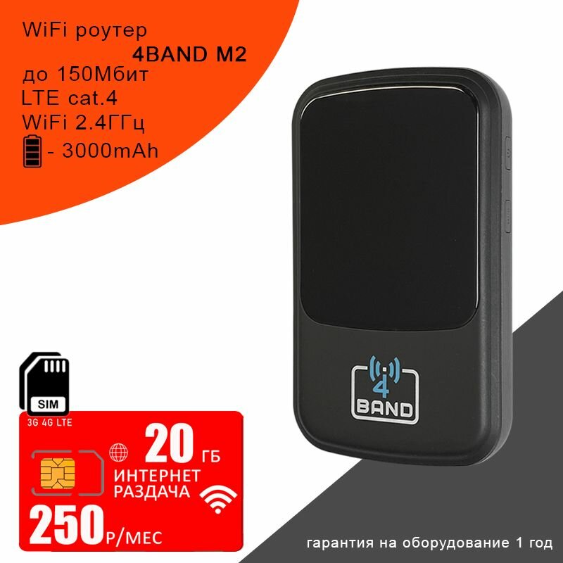 Купить Wi-Fi роутер 4BAND M2 + сим карта с интернетом и раздачей 20ГБ за 250