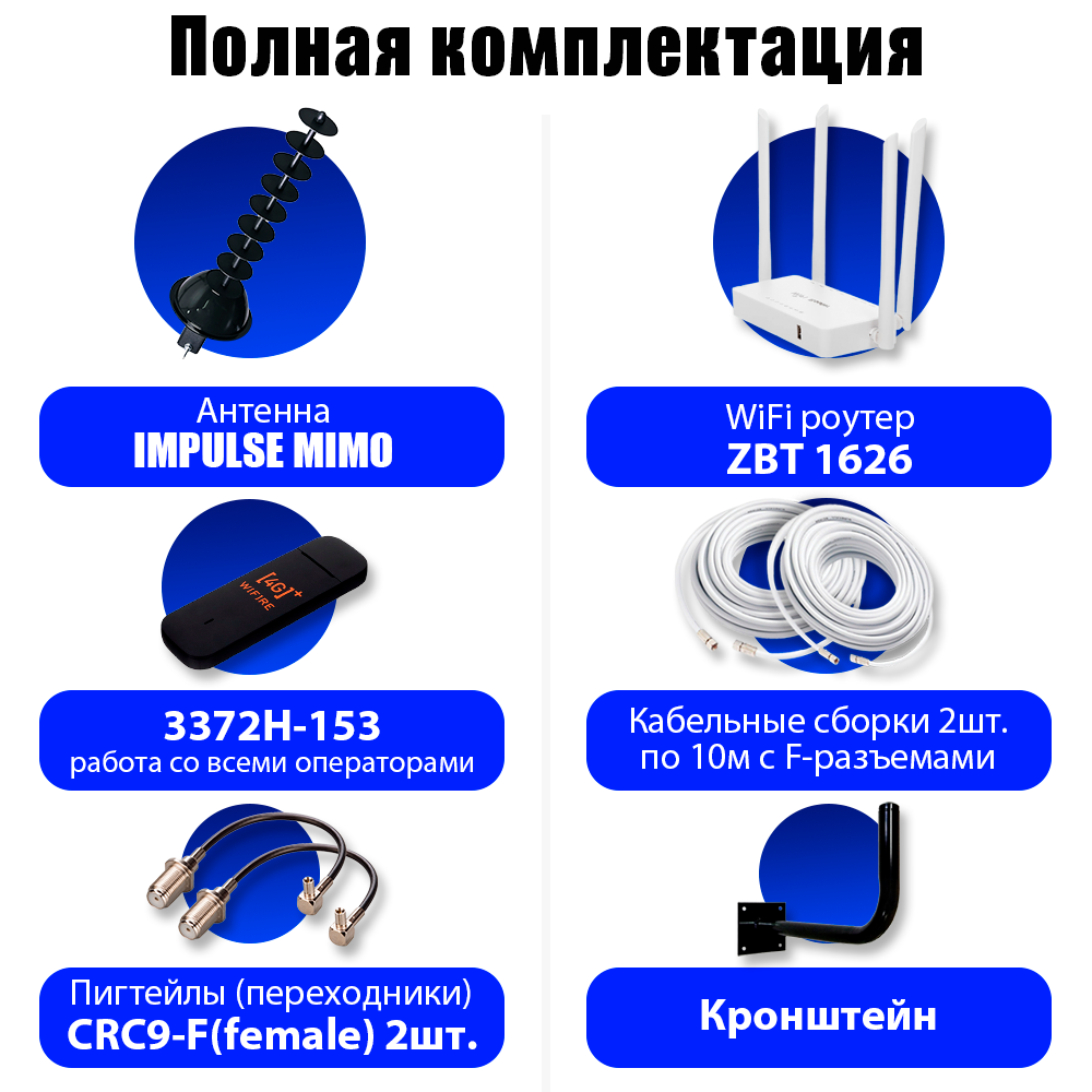Комплект Интернета Impulse 2x17 4G USB Модем + LTE MiMO Антенна + WiFi Роутер подходит Любой Безлимитный Интернет Тариф и Любая Сим карта интересное: