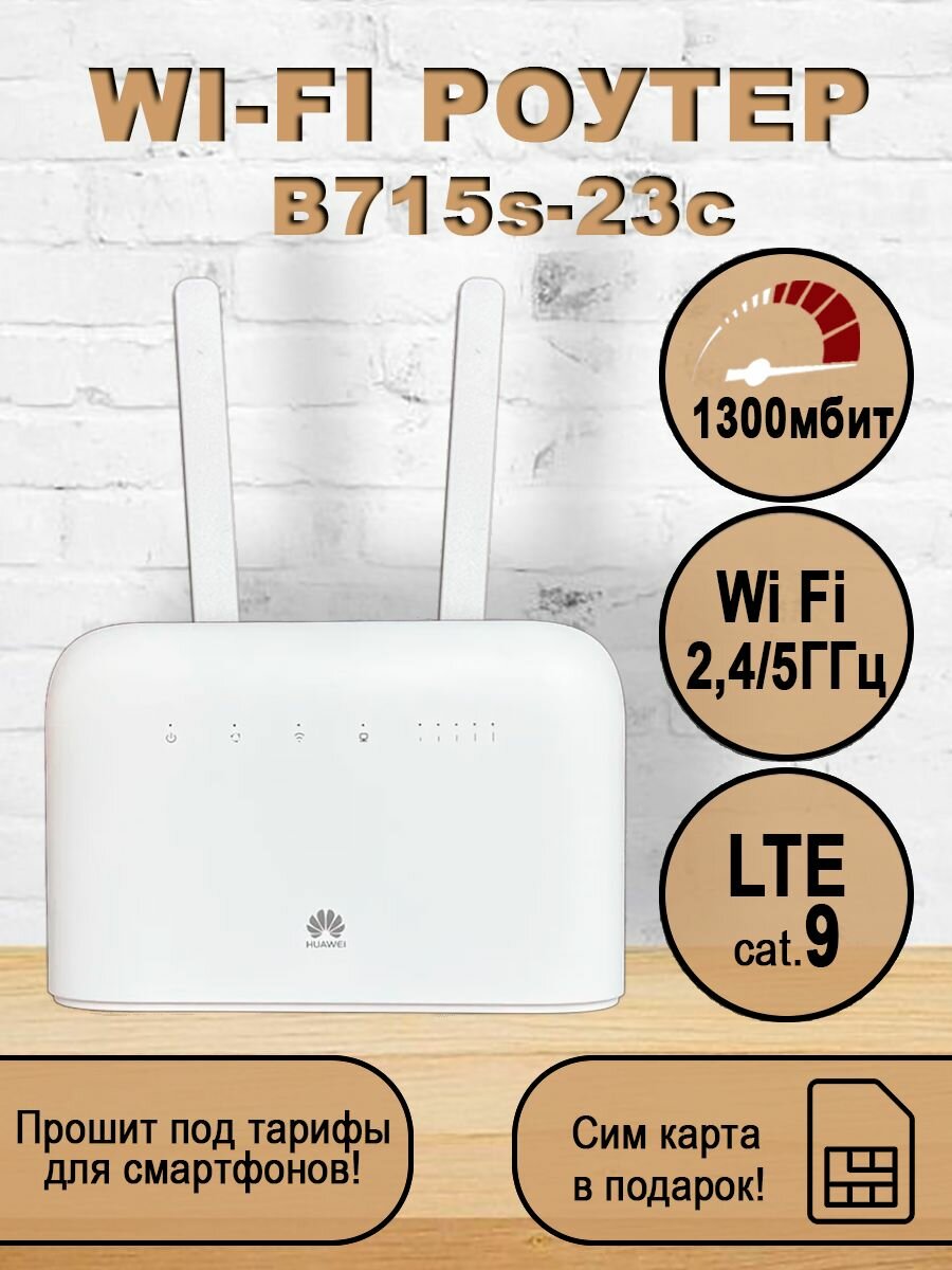 Купить 4G Wi Fi роутер B715s-23c с сим картой и внешними антеннами