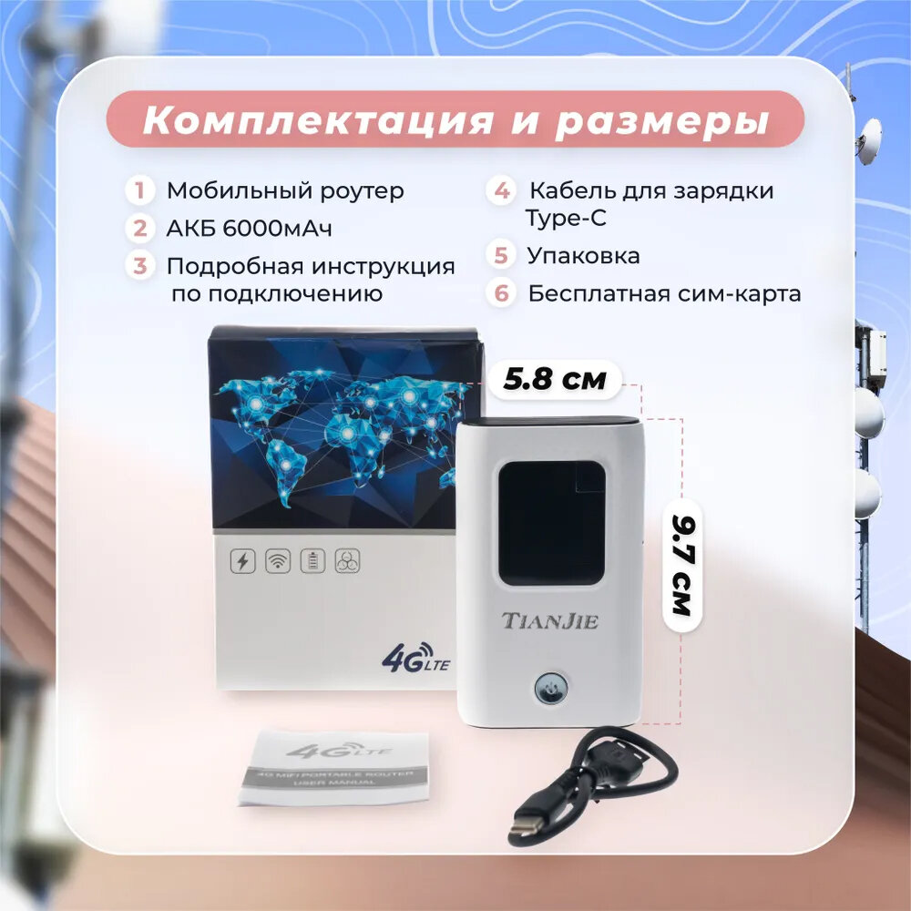 Купить TIANJIE MF905C Роутер wifi, Модем, 4G, Батарея - 6000mAh, SIM Карманный роутер wifi