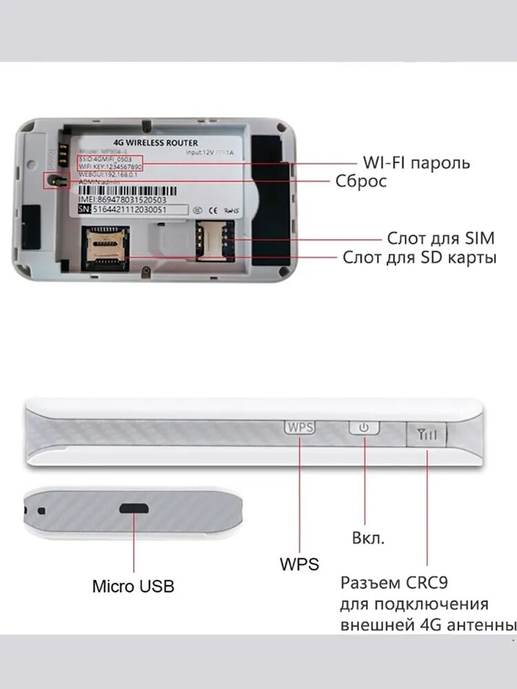 Беспроводной 4G WI-FI Роутер! Батарея на 6000mAh (до 12 часов без подзарядки)