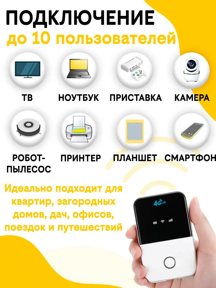 Мобильный 4G Lte WiFi роутер с аккумулятором на 10000 mAh. Разблокированный.