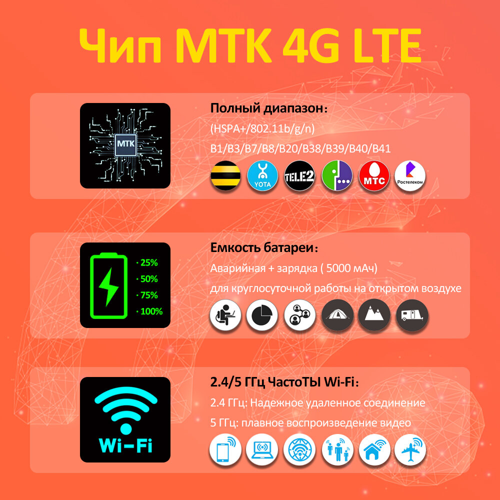 TIANJIE MF305 4G LTE-роутер, беспроводной переносный модем с Wi-Fi, мобильная Горячая точка с аккумулятором 5000 mAh интересное: