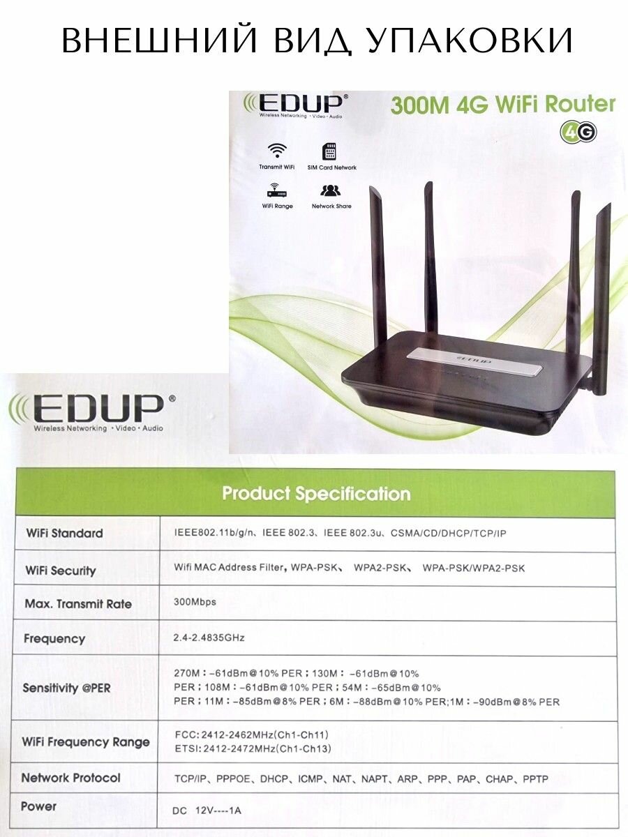 Роутер Wi-Fi EDUP 300M 4G LTE поддержка SIM-карт EP-N9522 интересное: