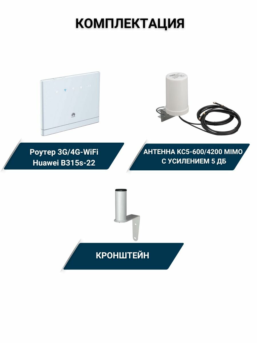Комплект мобильного интернета 4G Роутер B315s-22 iMEi TTL со всенаправленной антенной KC5-600/4200 MIMO интересное: