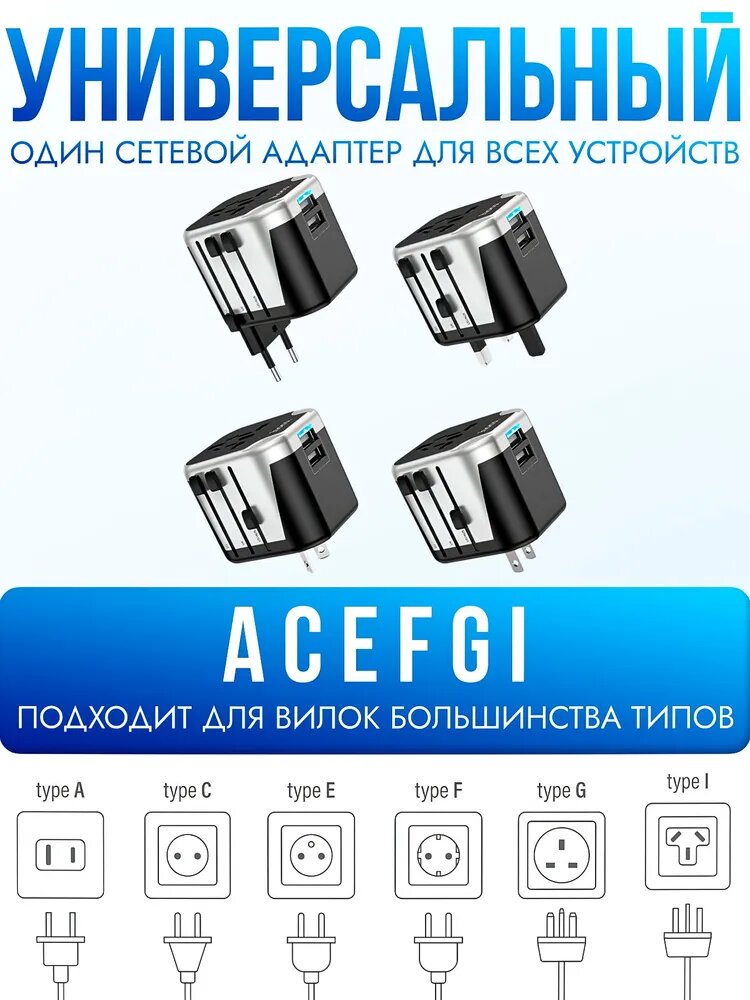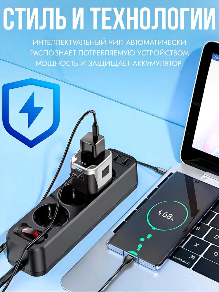 Сетевое зарядное устройство переходник HOCO AC5 12W под вилку EU/UK/US/AUS, черный интересное: